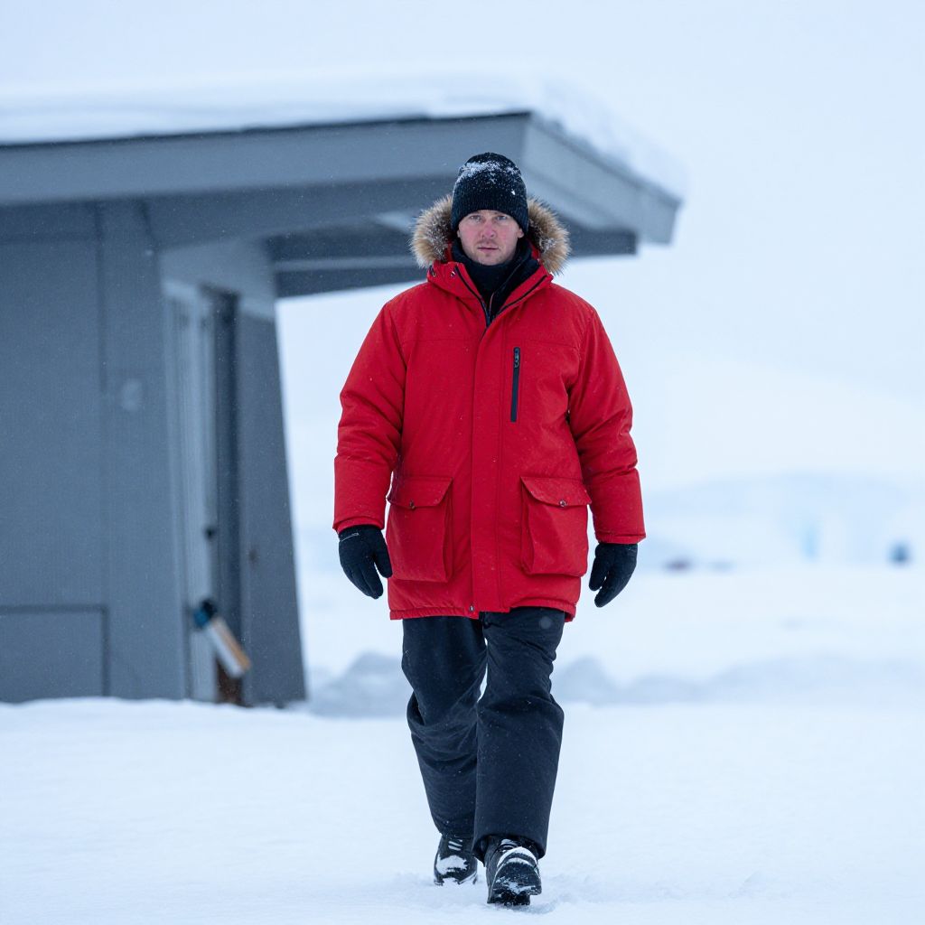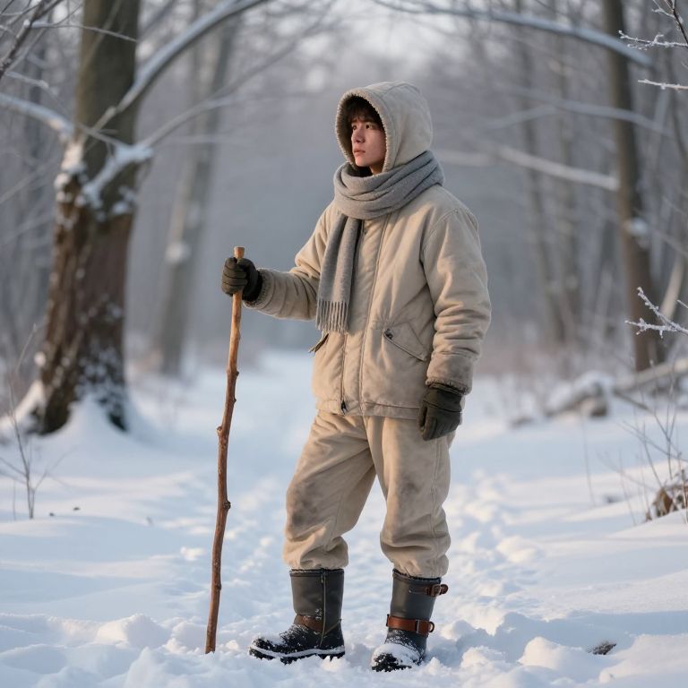 Rugged Man on Snowy Blizzard Bridge