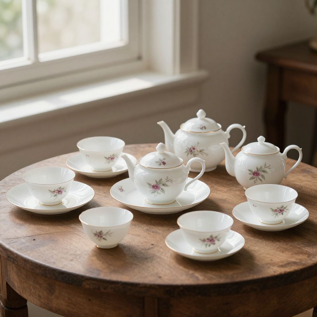 Vintage Porcelain Tea Set by Window