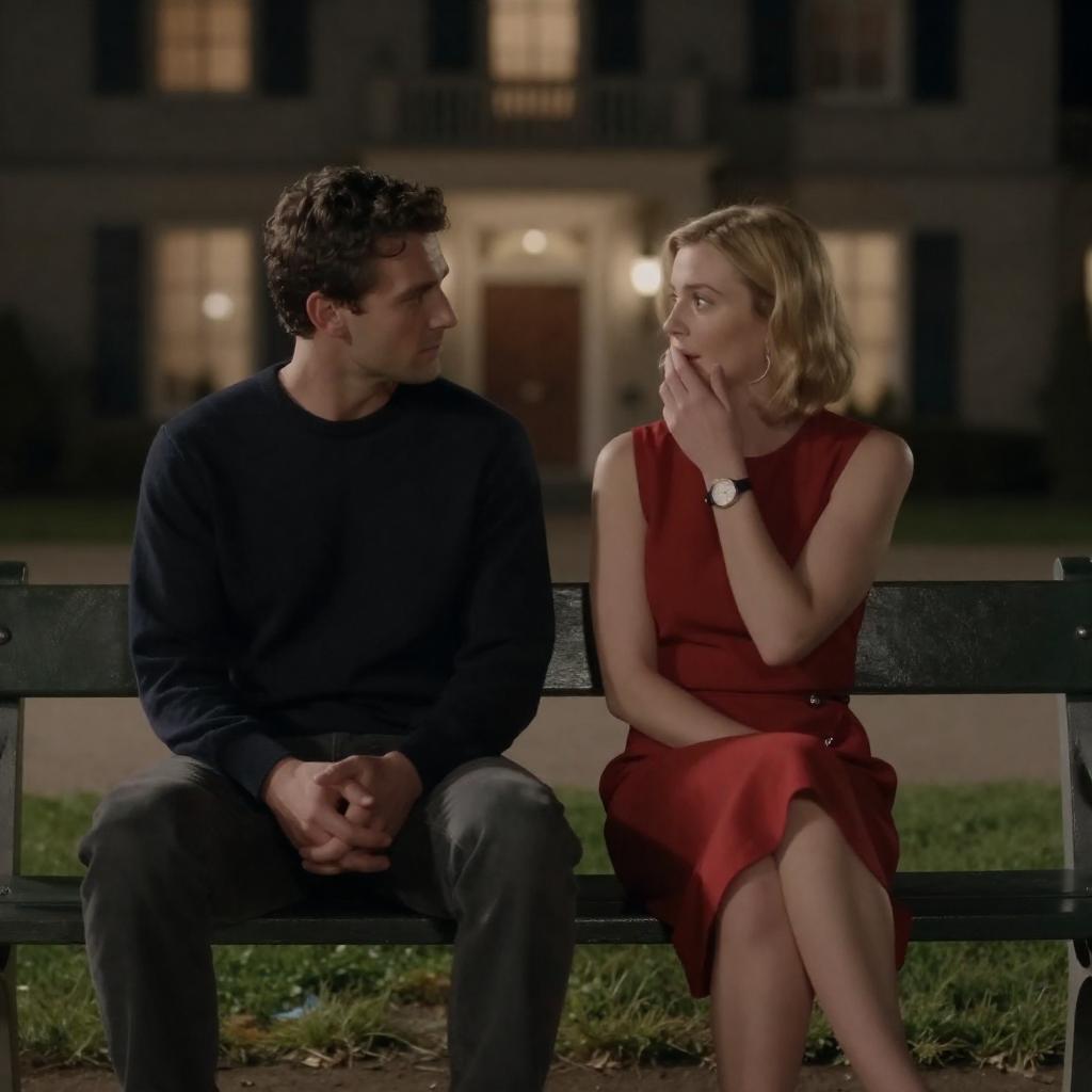 Intimate Night Scene with Couple on Bench