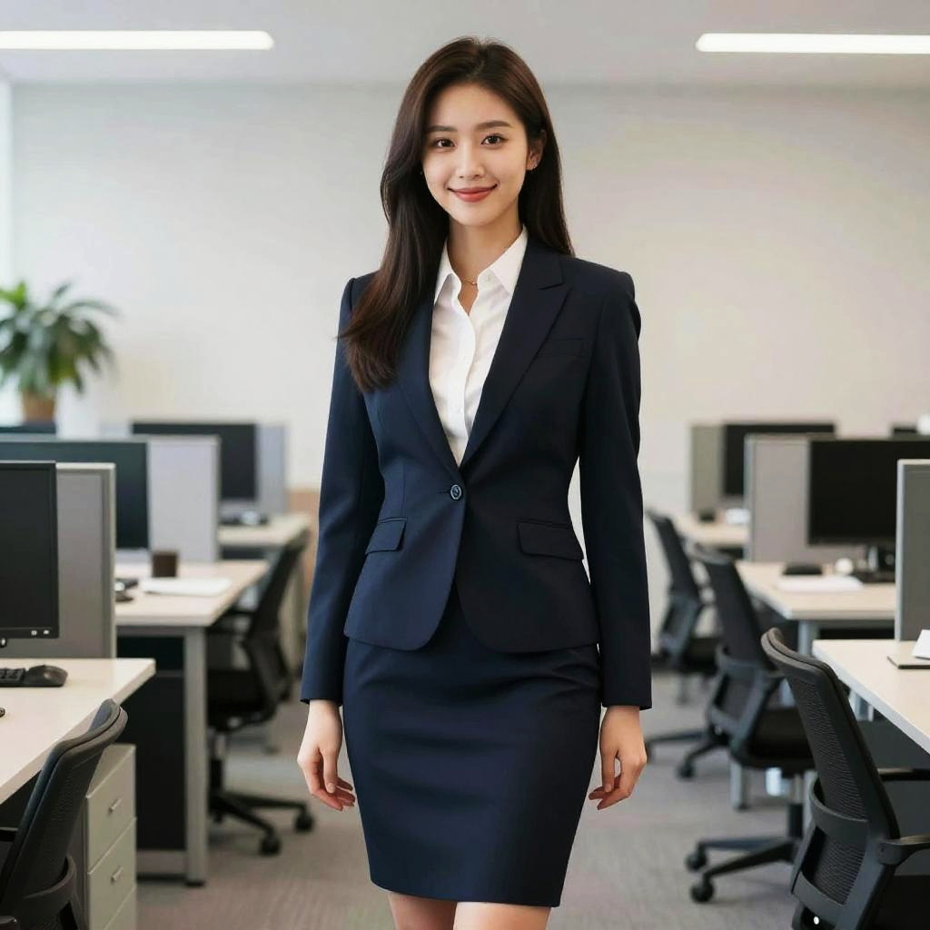 Charming Office Lady Sitting on Desk