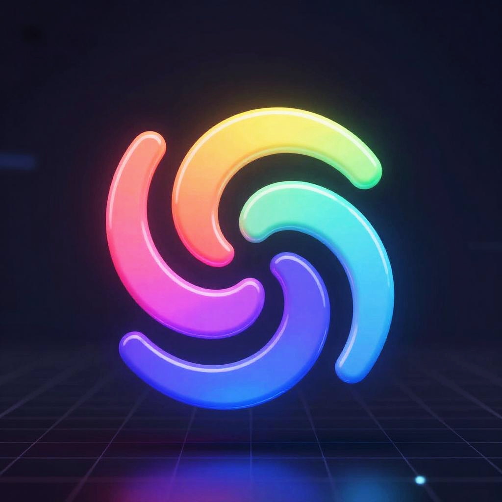 Stable diffusion icon, symbolizing controlled energy flow, vibrant neon colors, geometric shapes and smooth curves, cyberpunk aesthetics, glowing effects, clean style, against a subtle tech-inspired grid background
