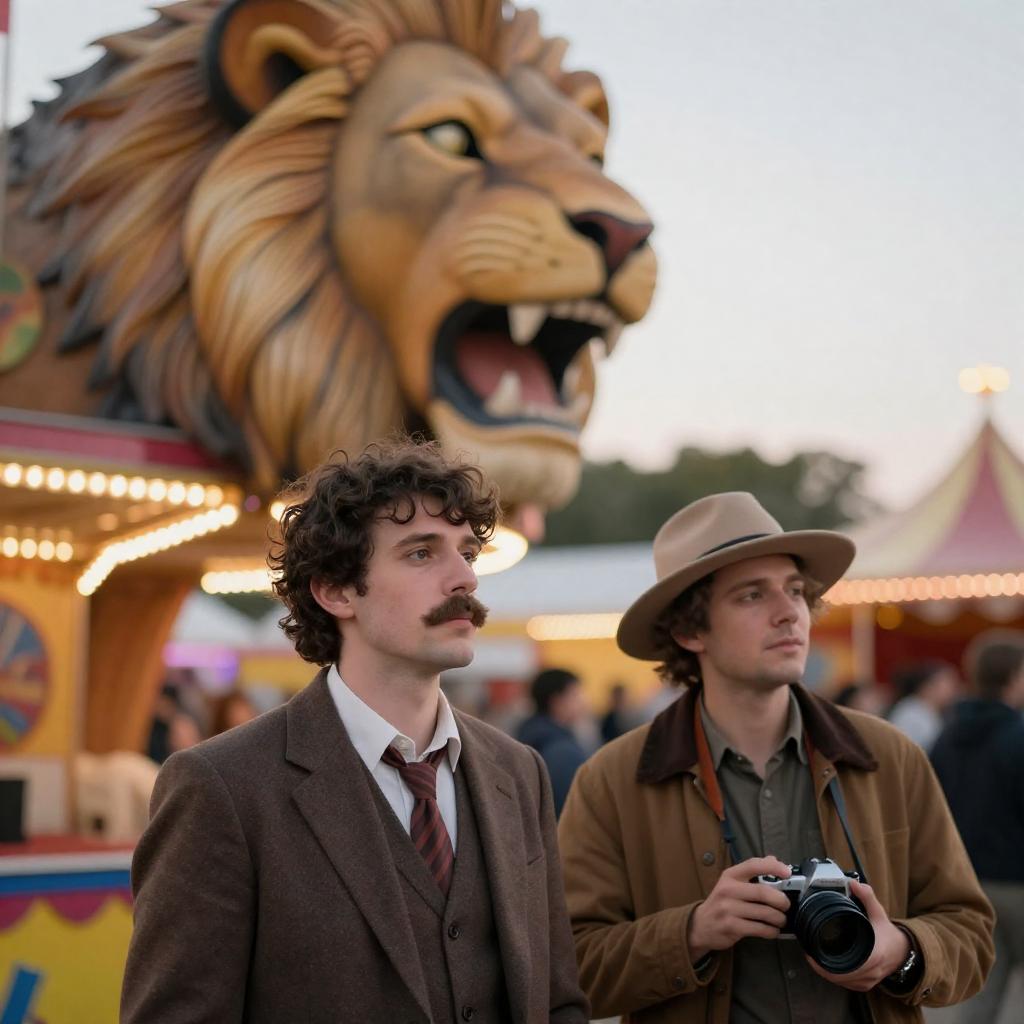 Trio of steam-age librarians in brass-rimmed goggles and moss-stained leather coats in a floating canal market beneath glass domes at dusk, photographed by Vivian Maier, shot on Fujifilm Velvia film with a 50mm lens, high-detail flash chiaroscuro lighting, f1.8 bokeh, hypermaximalist photorealistic portrait, elegant and appealing.