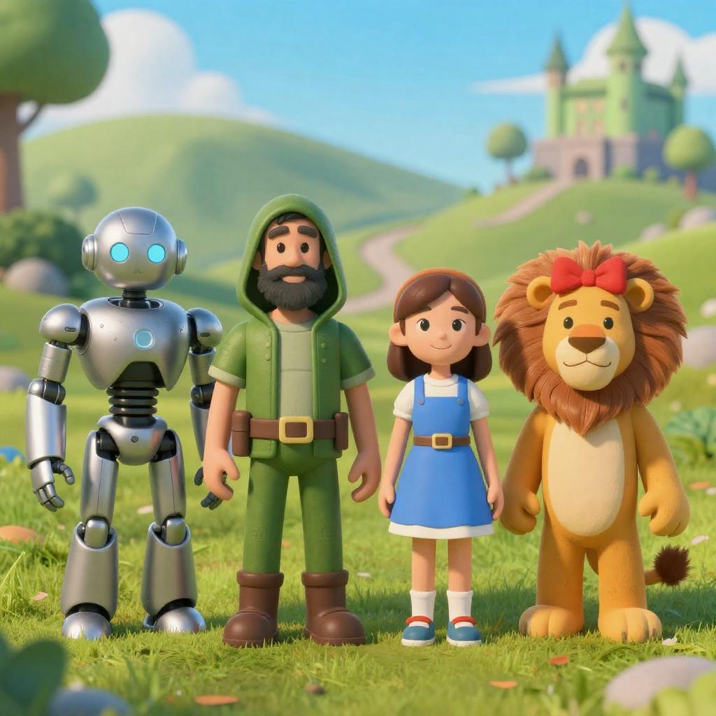 Digital illustration featuring three animated male characters with exaggerated facial features. The central figure has dark hair, a full beard, and wears a black shirt. He is flanked by two men with black hair, white shirts, and wide grins. The background consists of a purple sky with red clouds, enhancing the vibrant and playful atmosphere of the image.
