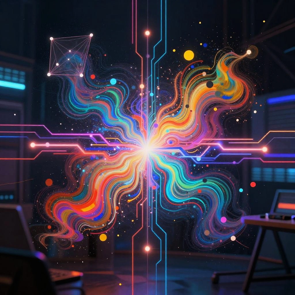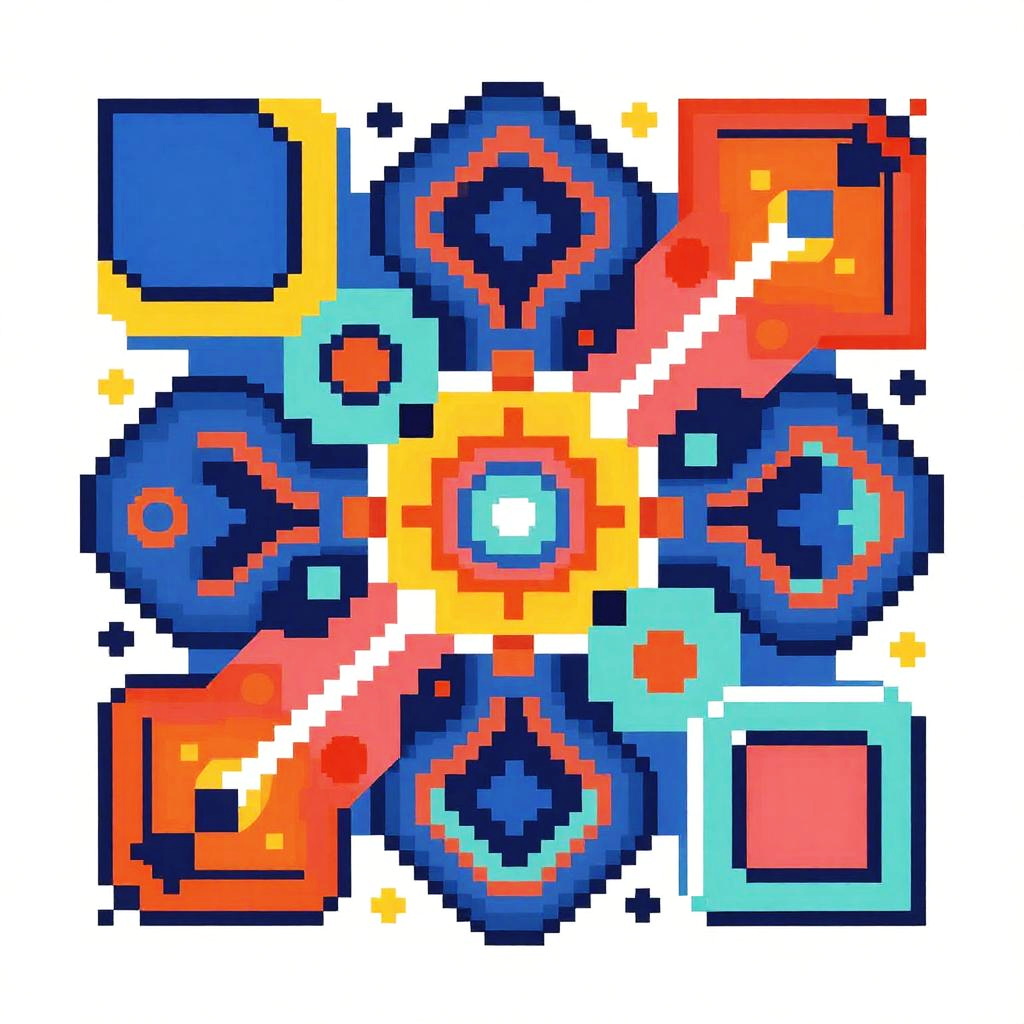 Pixel AI art generator creating a vibrant digital mosaic, blending colorful pixelated patterns with abstract shapes, futuristic style, high contrast lighting, dynamic composition, sharp details, tech-inspired background.