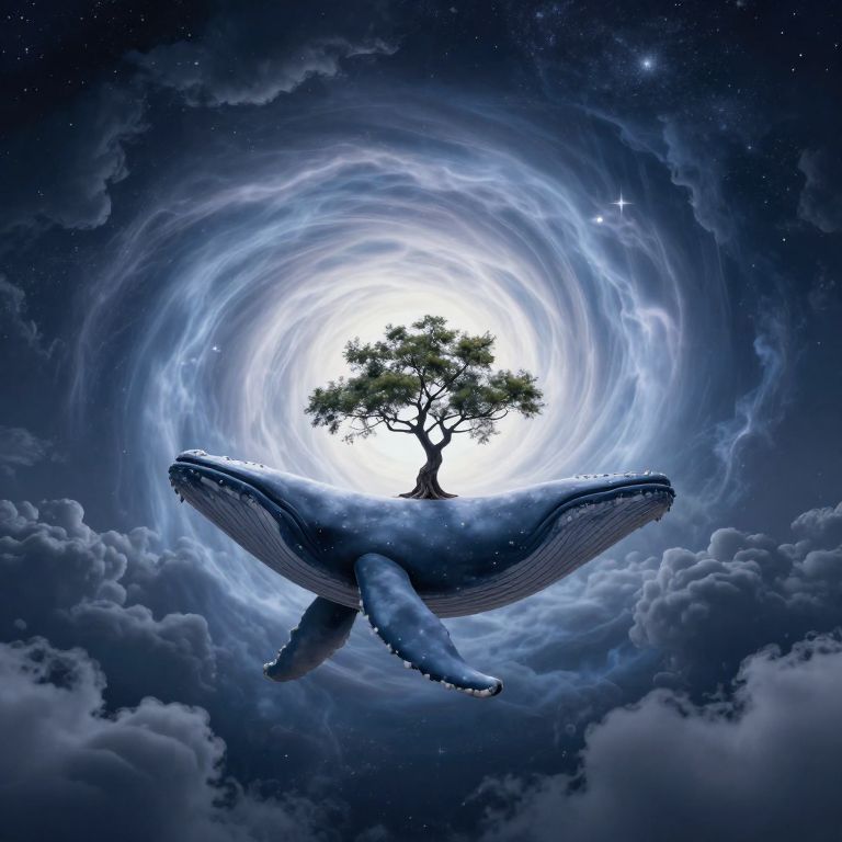 Solitary Tree on Whale in Celestial Sea