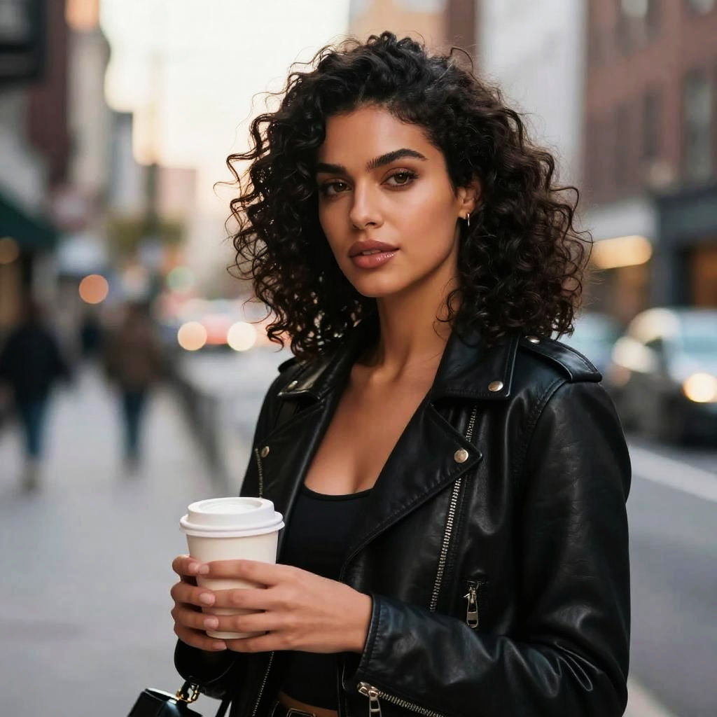 Lush garden party fashion scene at vibrant tropical rainforest clearing, solo woman with long curly caramel hair and hazel-green eyes, wearing a flowing pastel pink sundress with delicate floral embroidery, holding a sparkling crystal glass and looking at the viewer, dewy lips, full bust, relaxed posture, shallow depth of field, soft haze, creamy bokeh, crisp subject focus with a subtly blurred background, natural refined color grading, high-detail skin, gentle fabric highlights, serene composition