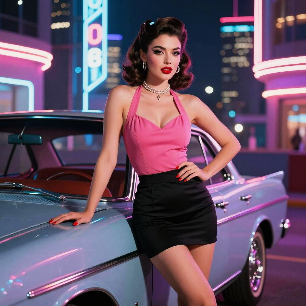 Vintage 1950s Girl on Retro Convertible