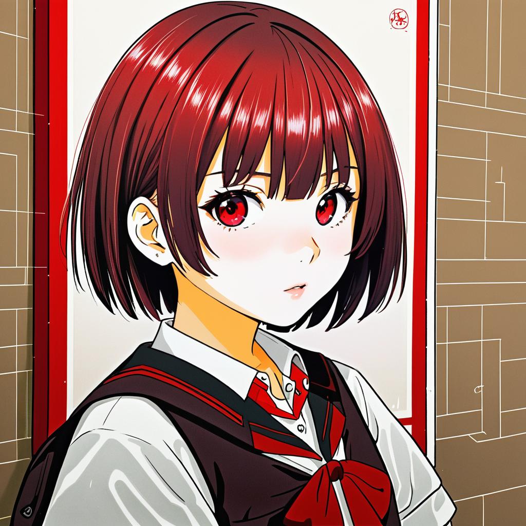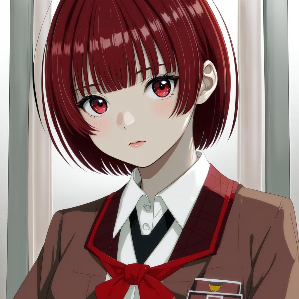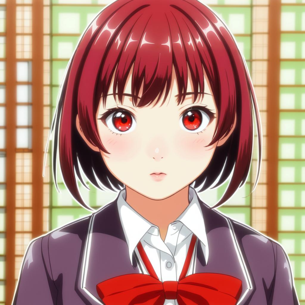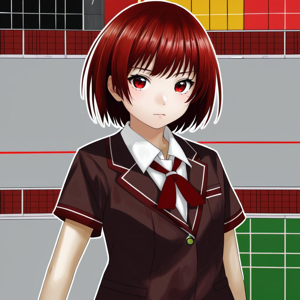 Aoba tsugumi, kannagi, 1girl, red eyes, short hair, red hair, brown hair, school uniform, school uniform, by artist enami hakase, anime