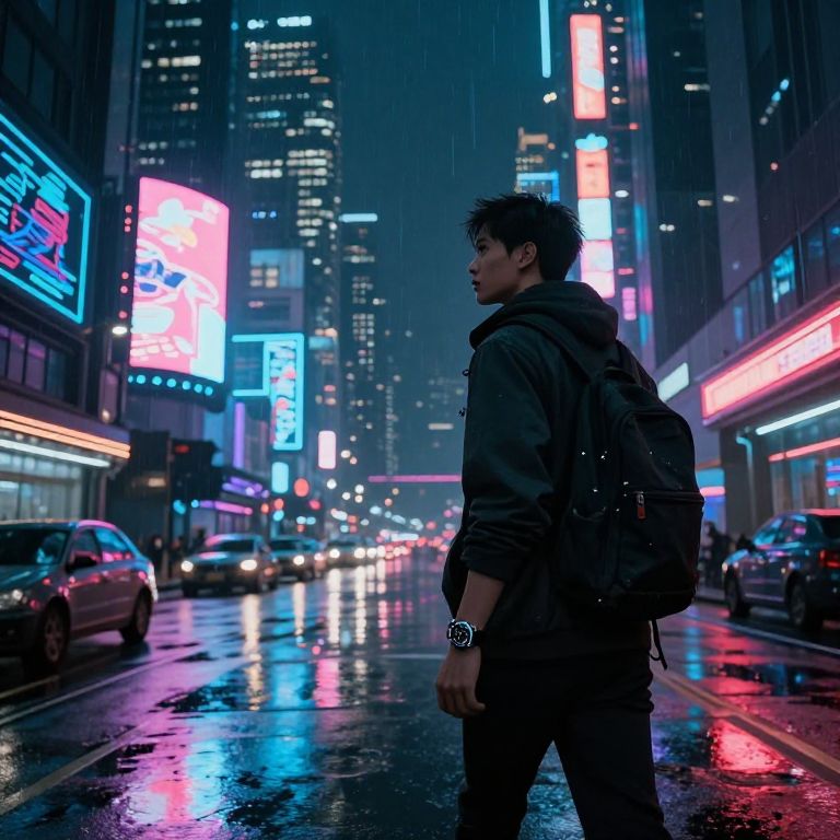 X-t3al in a futuristic cyberpunk city at night, neon lights reflecting off rain-slicked streets, glowing holographic ads, digital graffiti, and a lone figure walking through a towering skyline with a high-tech watch, cinematic lighting, ultra-detailed, MidJourney style.