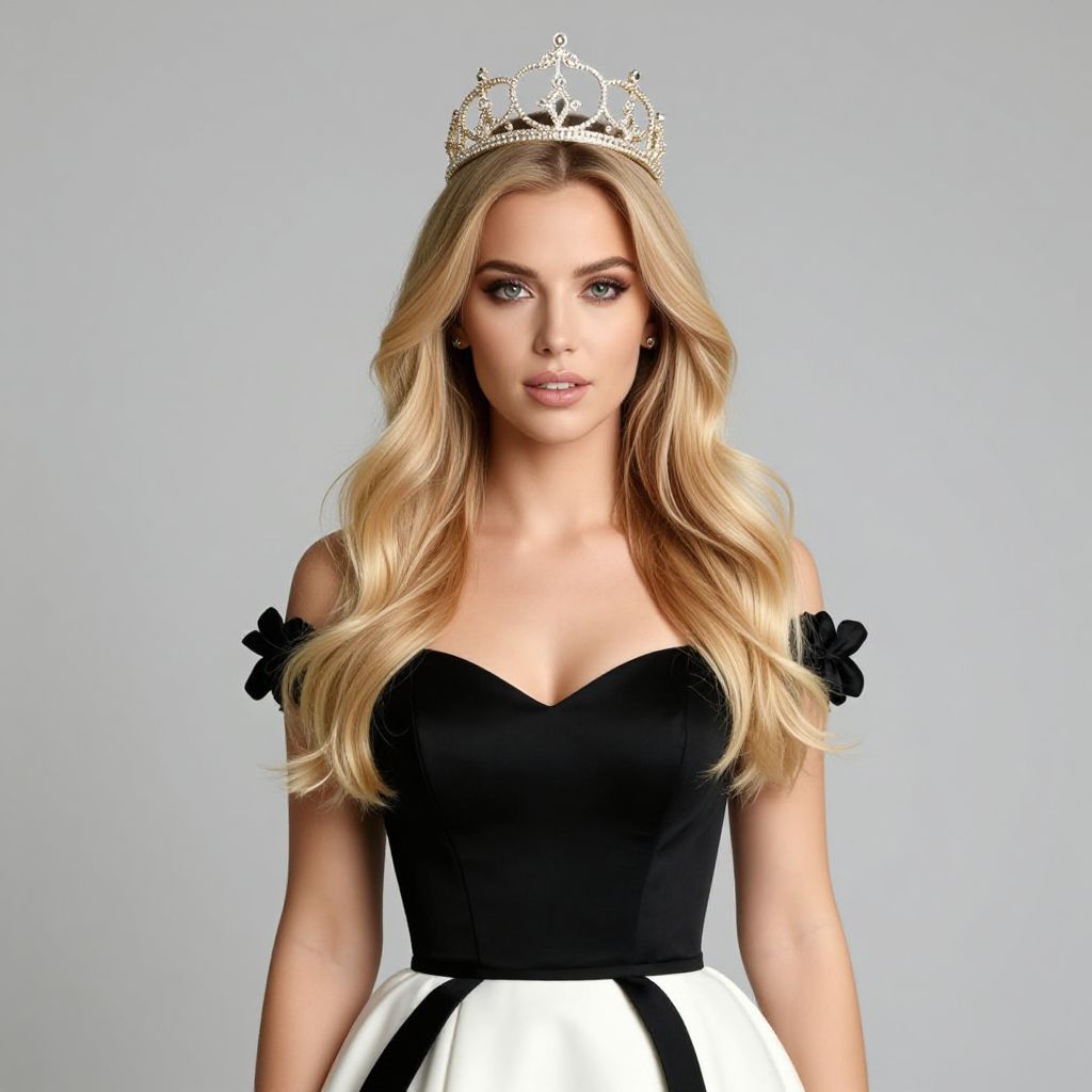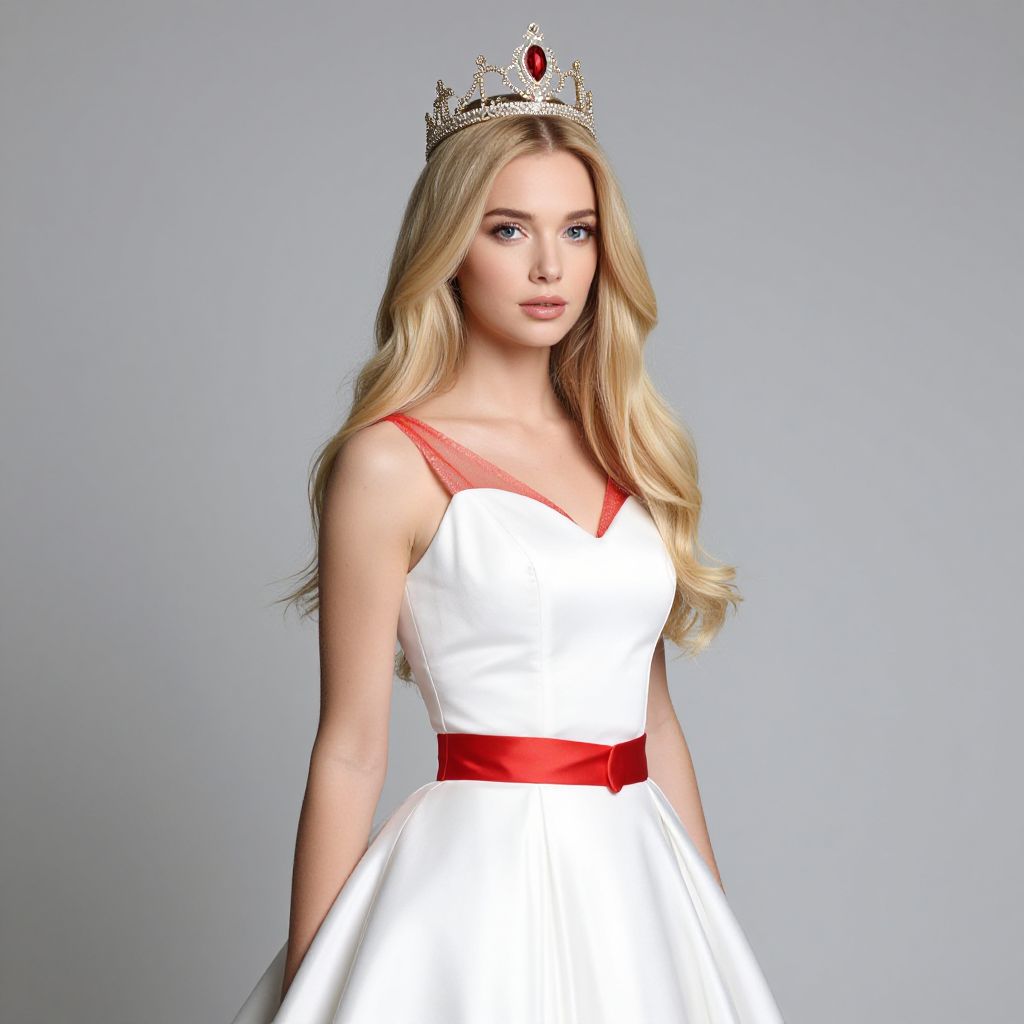 Blonde Woman in White Dress with Red Beads