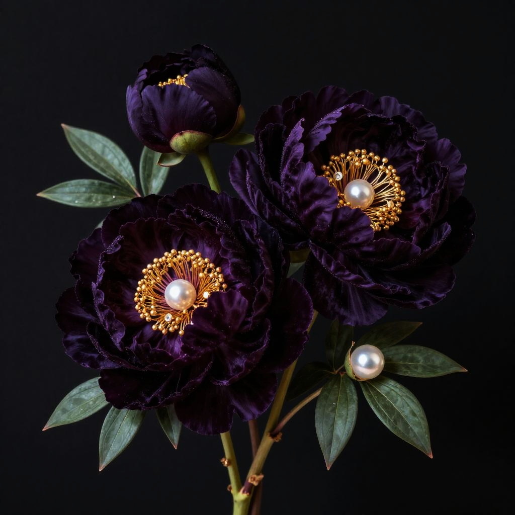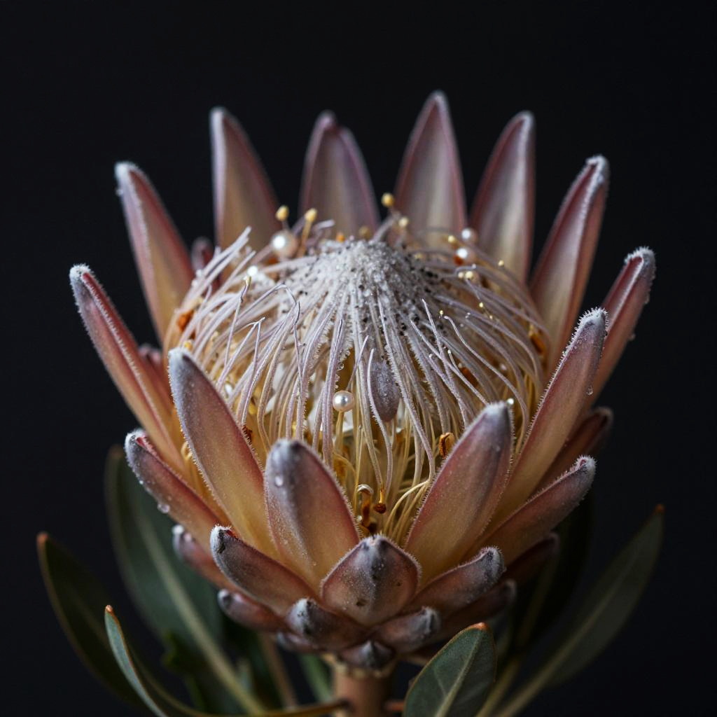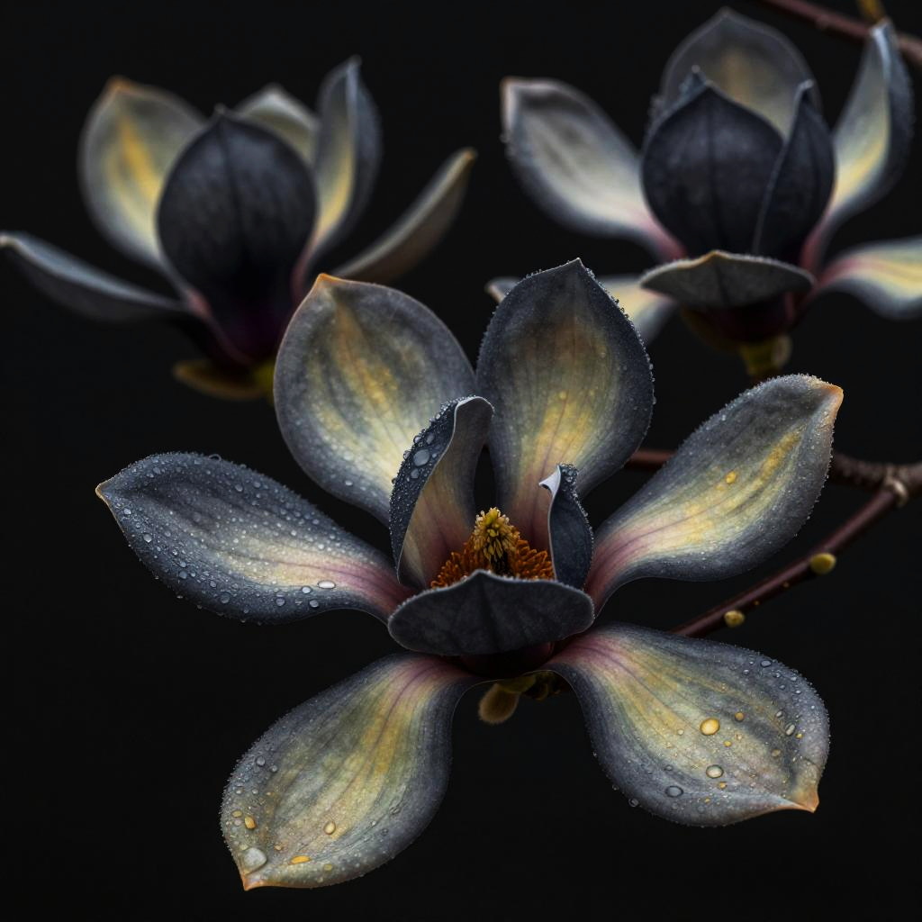Lush succulent plants in emerald, lemon yellow, cerulean and artichoke green, hyperrealistic botanical scene with fully detailed particulate textures on a seamless black background, photographed with a Canon EOS R5 with 100 mm macro lens, studio lighting, shallow depth of field.