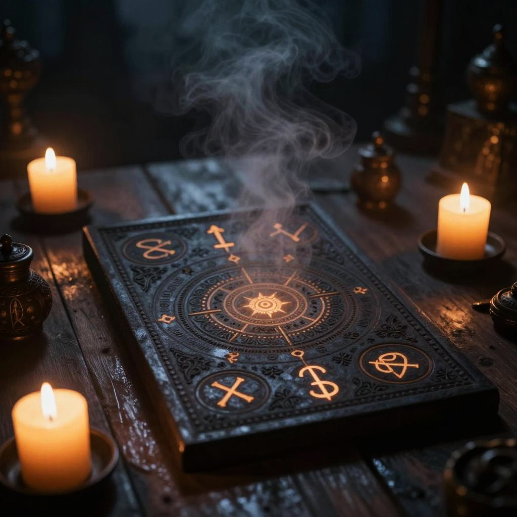 Eerie Ouija Board in Dim Candlelight