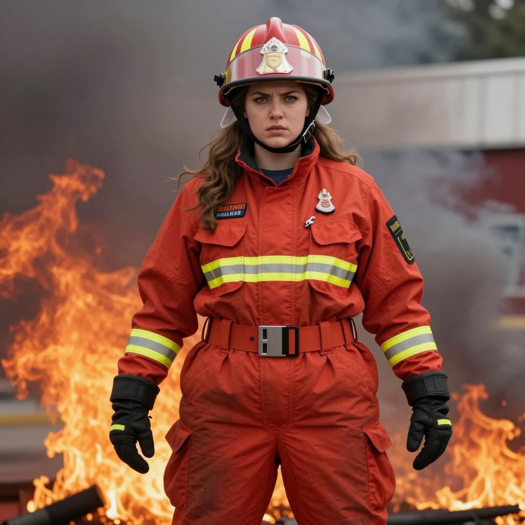 Black and white photograph of a woman with a beanie, long black hair, and light skin. She wears a camouflage jacket with tactical gear. She holds a lit candle in her right hand. Background is blurred with soft light. Her expression is neutral. There are two other indistinct figures in the background.