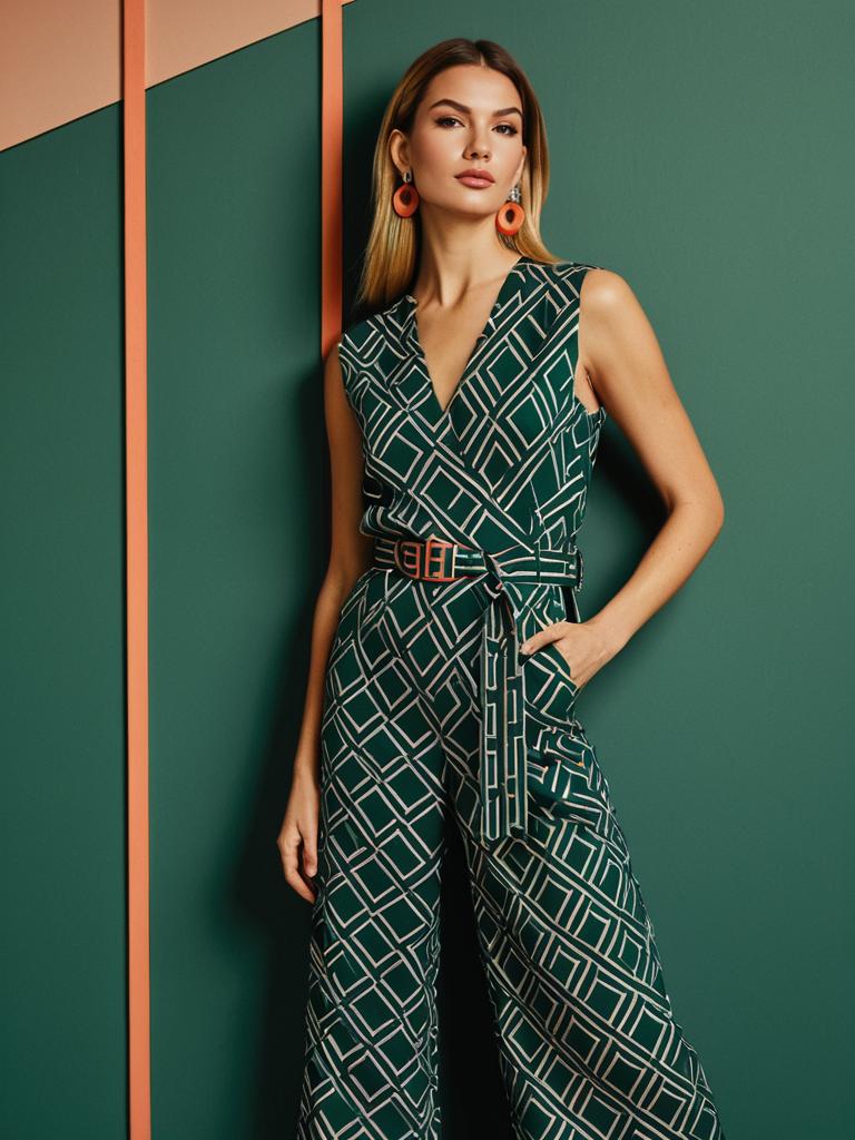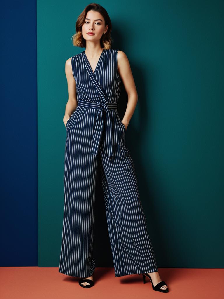Woman in Striped Bohemian Halter Jumpsuit and Beret