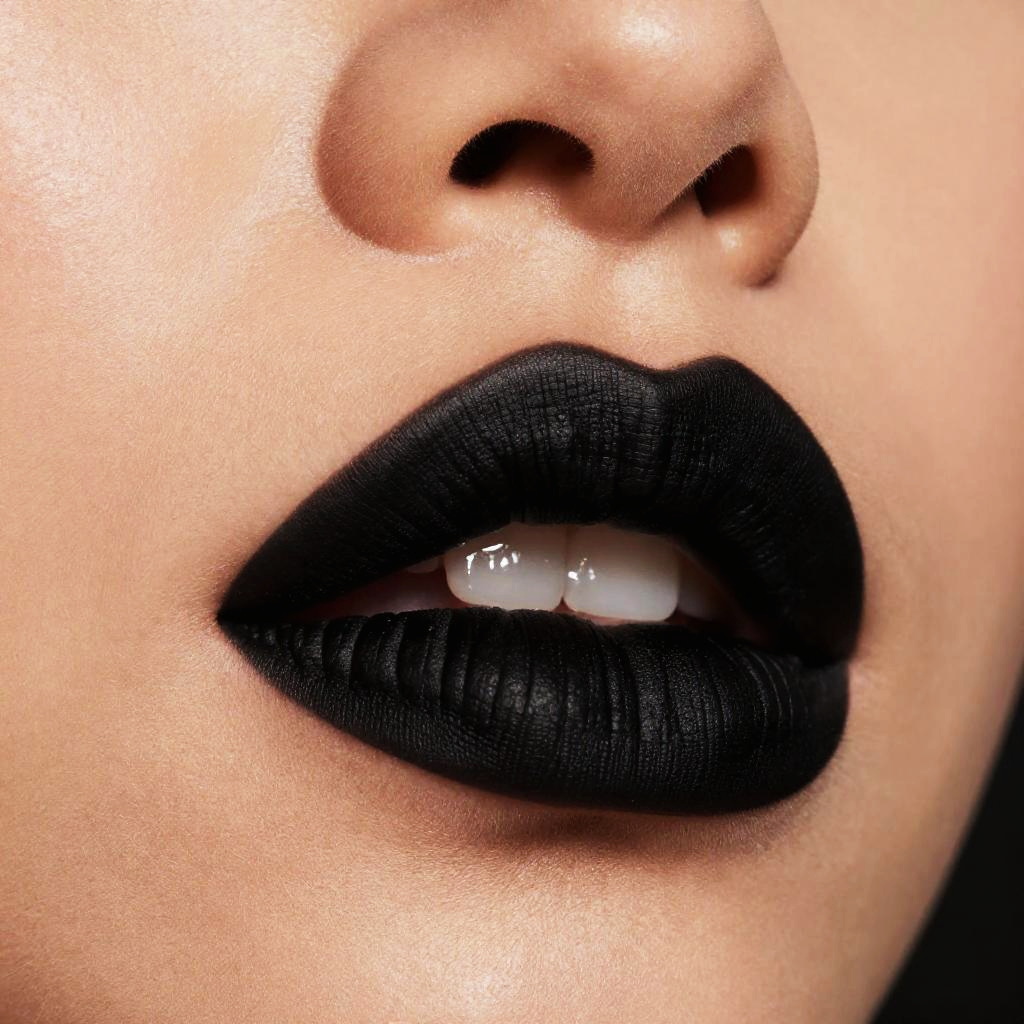 Matte Black Lipstick Glamour Close-Up