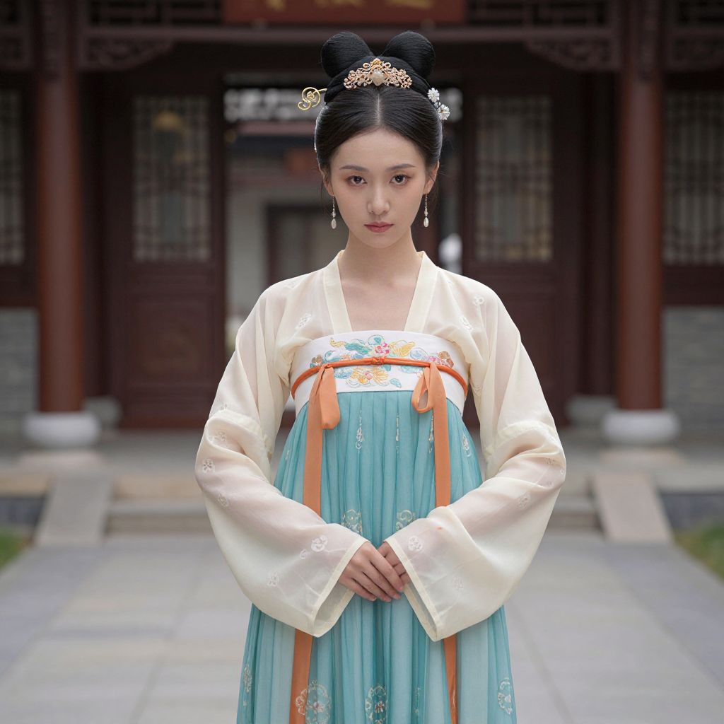 Top Fancy Costume, woman in a traditional chinese dress standing in a courtyard
