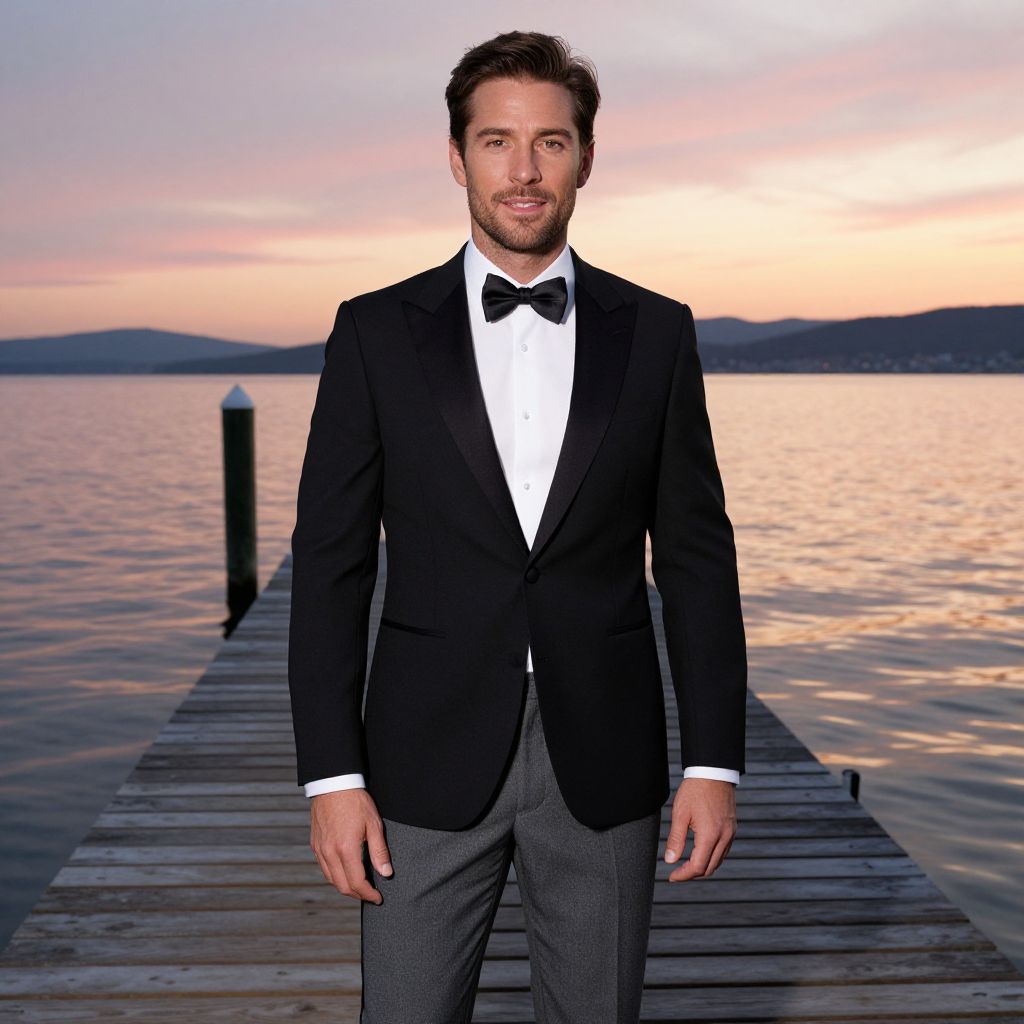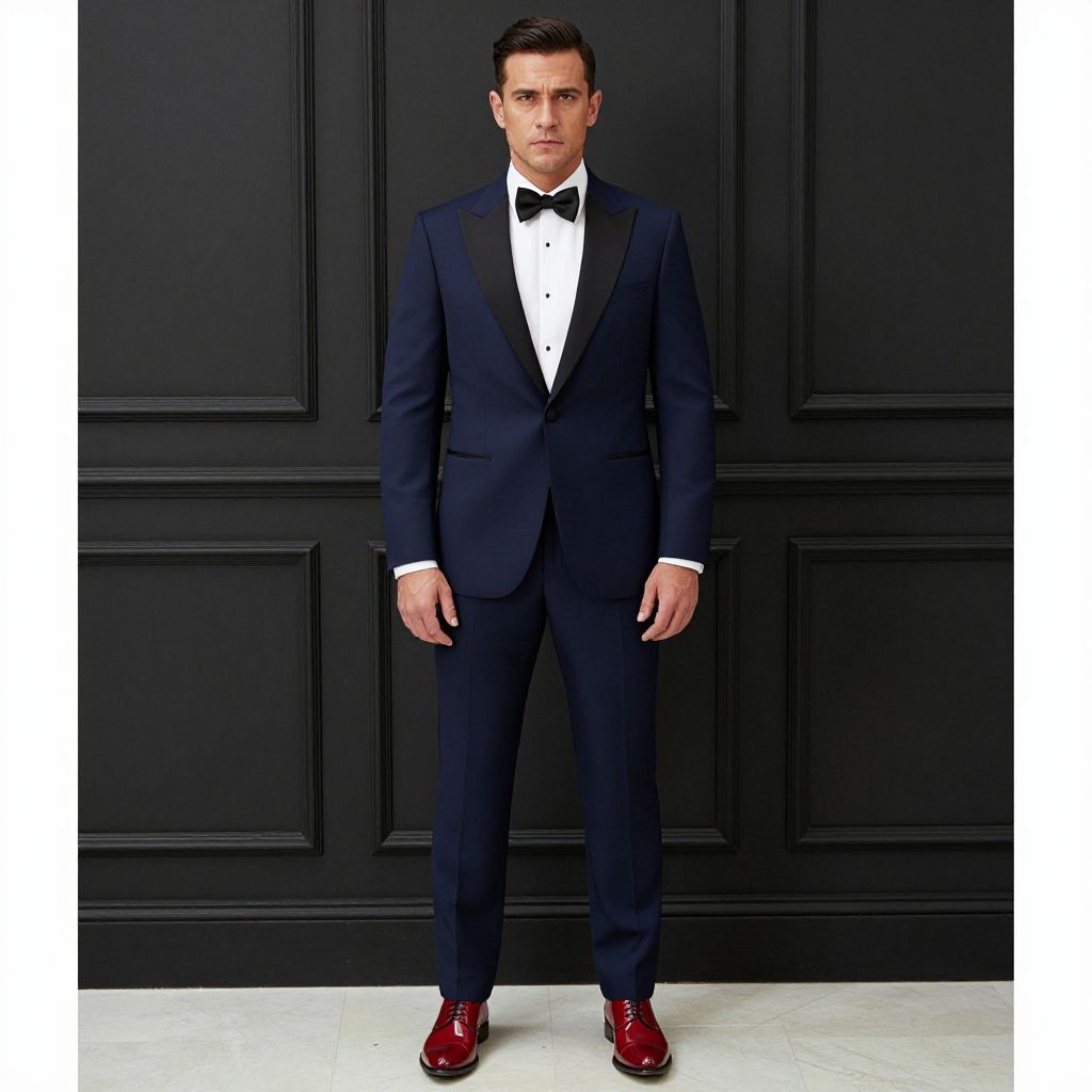 Confident Man in Burgundy Tuxedo