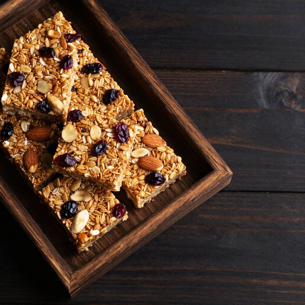 Rustic Granola Bars on Wooden Tray