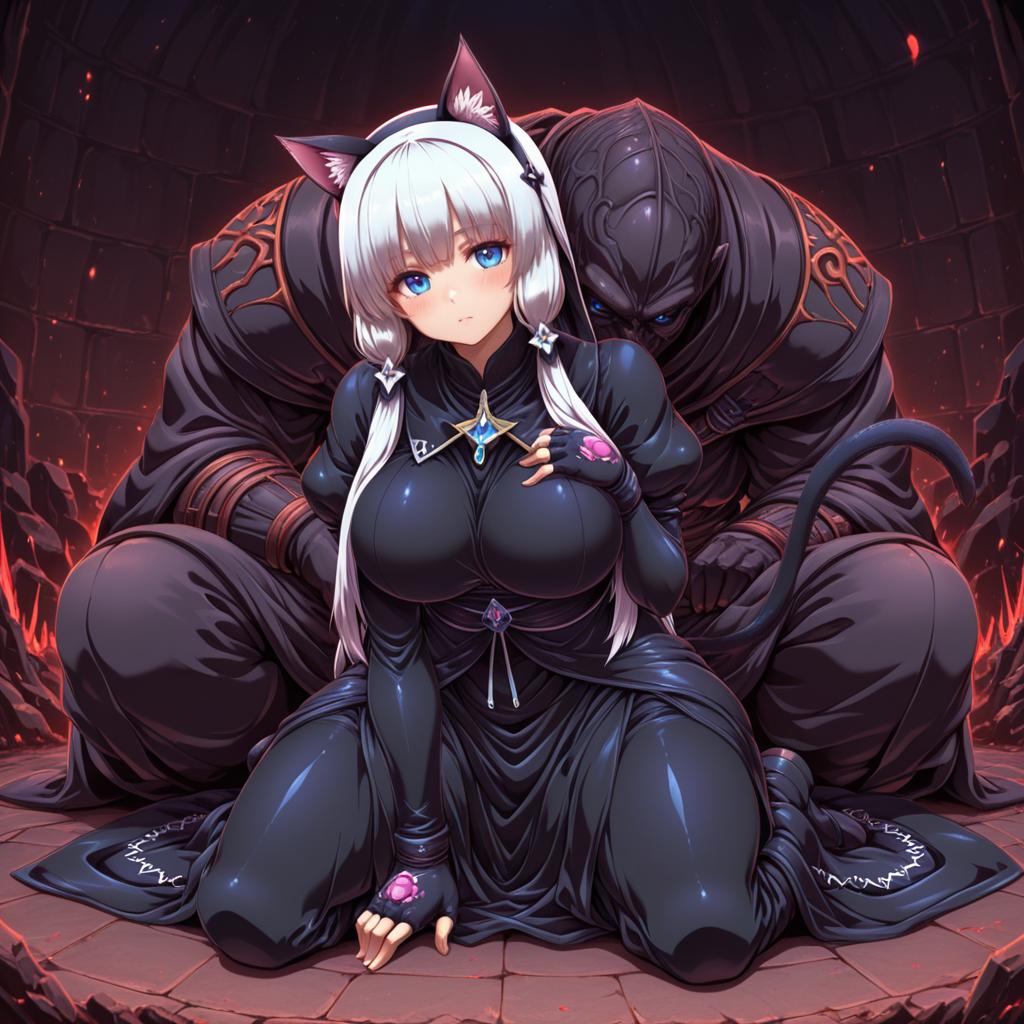 Monk (final fantasy), final fantasy, 1girl, cat ears, cat tail, blue eyes, short hair, long hair, fingerless gloves, miqo'te, by artist tokyo (great akuta), dark_illustrious