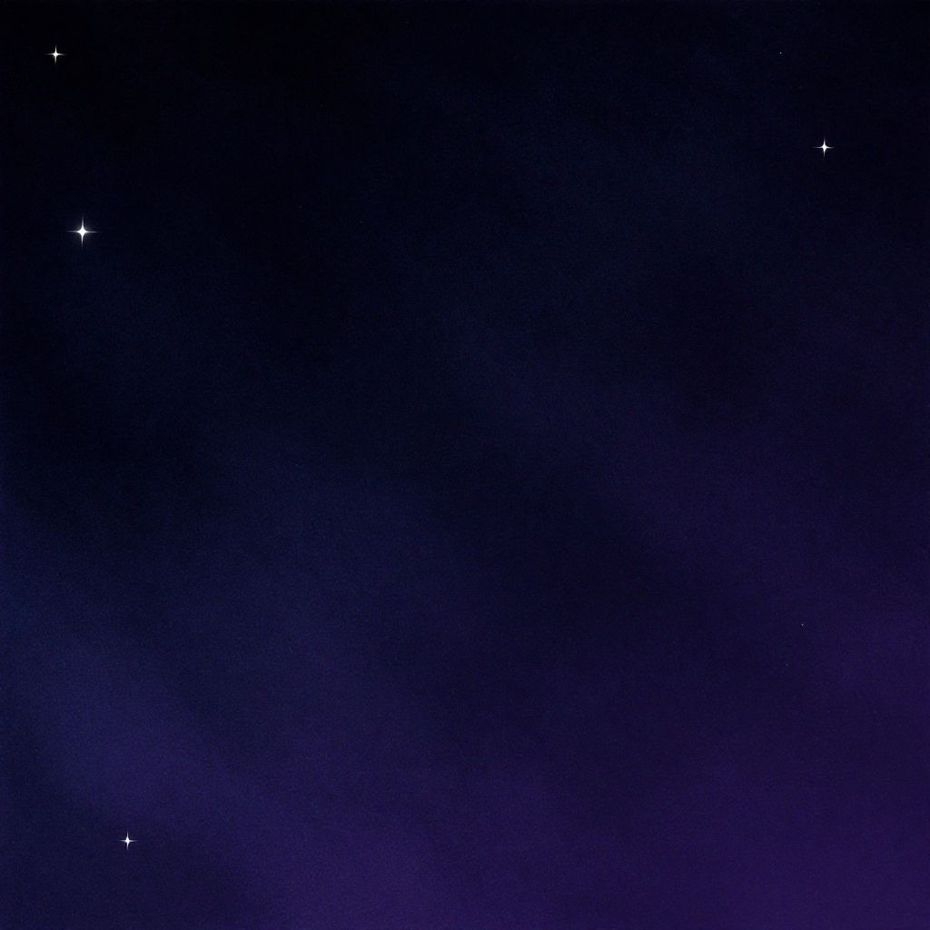 Photograph of a dark blue night sky with four small, bright white stars scattered across the upper left and right corners.