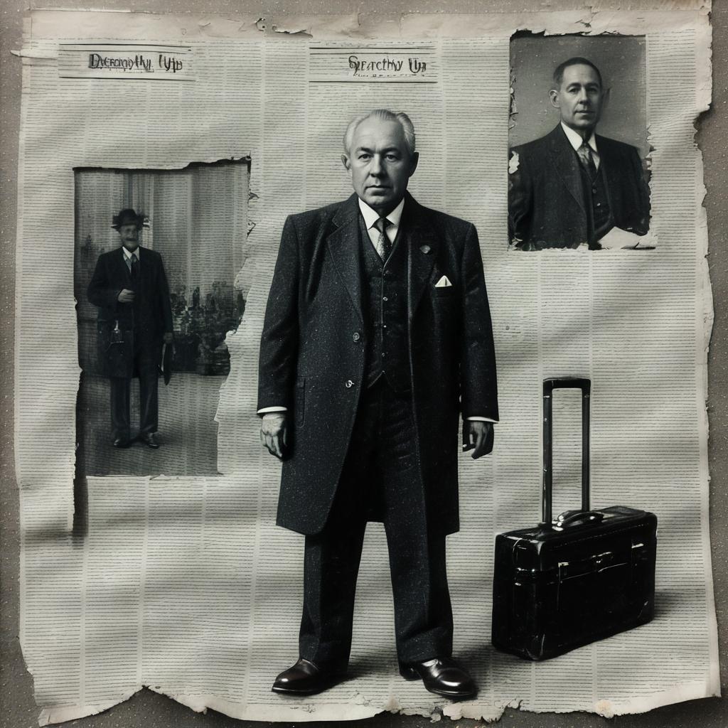 Mixed media artwork + (scratchy faded torn up newspaper overlay:2.0), whimsical clown, wearing colorful suit, in the style of surrealist expressionism, grainy fuzzy distorted canvas effect, muted lime green, faded weathered effect color scheme, dreamlike atmosphere, abstract and distorted forms, pixel sorting effect.
