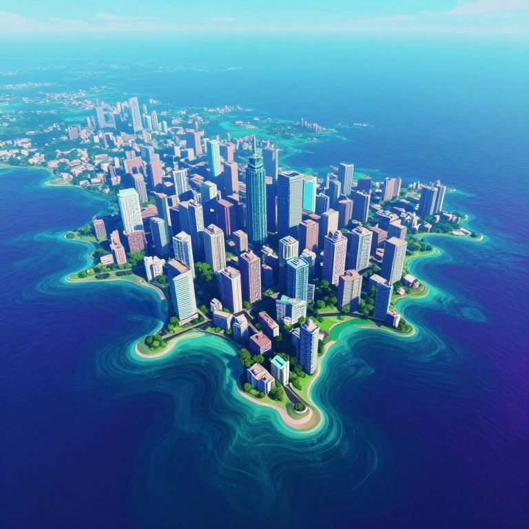 Surreal Cityscape Merging with Ocean