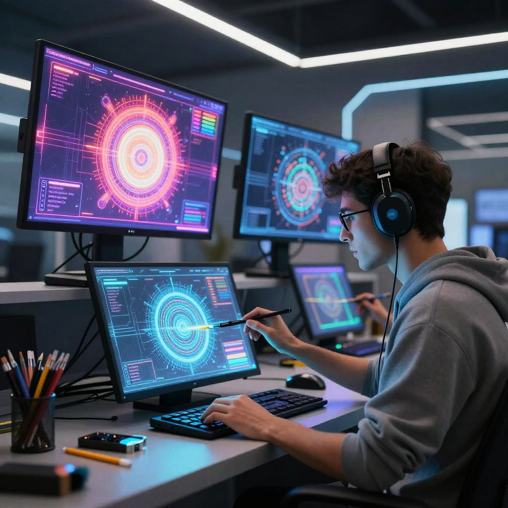 Futuristic AI Digital Artist Studio