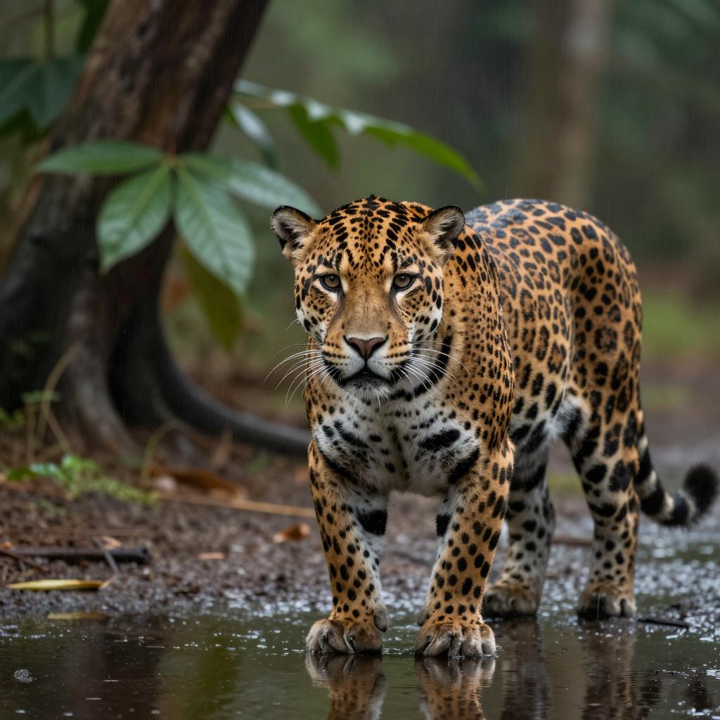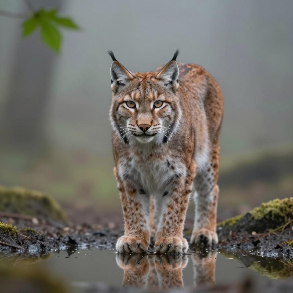 No humans, sunshine, outdoors, nature, elk, animal, animal focus, reflection, water, blurry, forest, looking at viewer, tree, plant, leaf, blurry background, whiskers, realistic