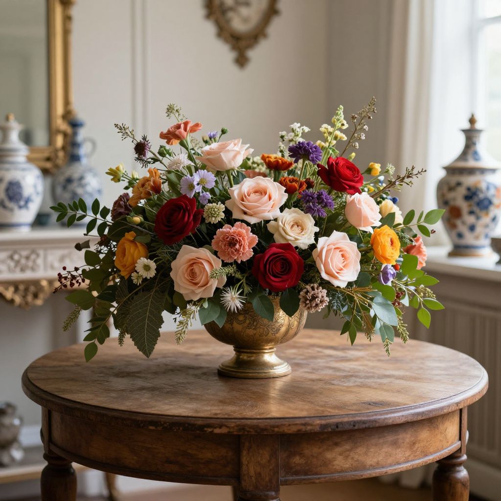 Decorativa Floral Arrangement on Vintage Table