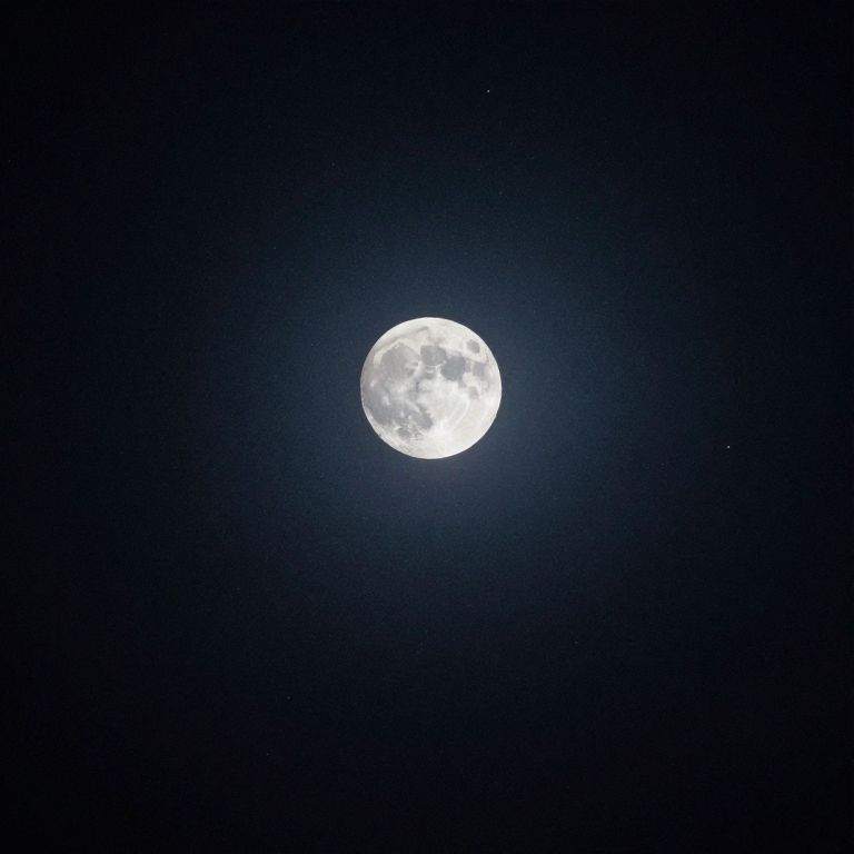 Under the watchful gaze of the moon, a celestial symphony of dust motes dances through the night, weaving a tapestry of serenity and mystery that whispers of the infinite dance between light and shadow.