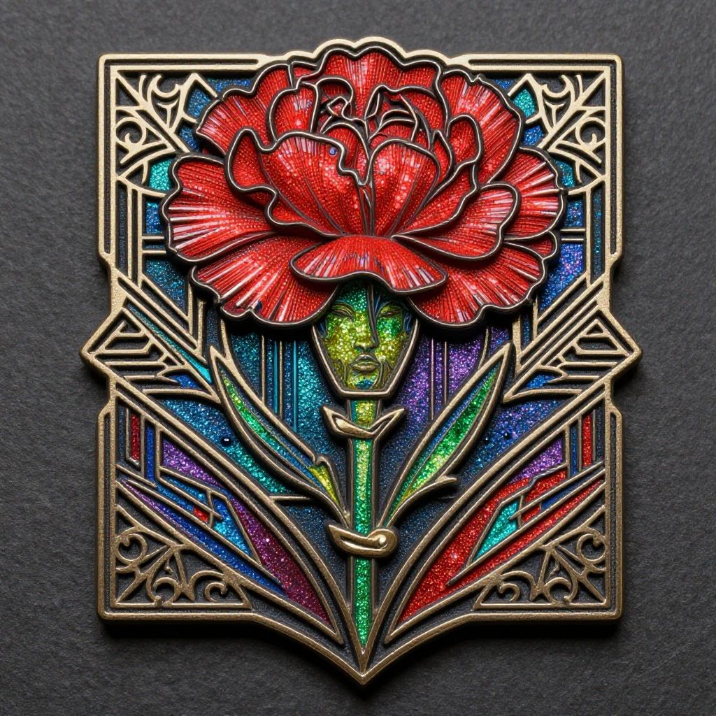 Line art trinket depicting a Red carnationJim Dine, natural, shimmering, vibrant, gothic, rpg, 1400ad, ultra detailed, detailed, immersive, reminiscent of high fantasy RPG games, HD, masterpiece, best quality, hyper detailed, super realistic, perfect face, perfect hands, award-winning, professional, breathtaking, linquiveraexquisite Promontoryhorrid weatherart deco style . geometric shapes, bold colors, luxurious, elegant, decorative, symmetrical, ornate