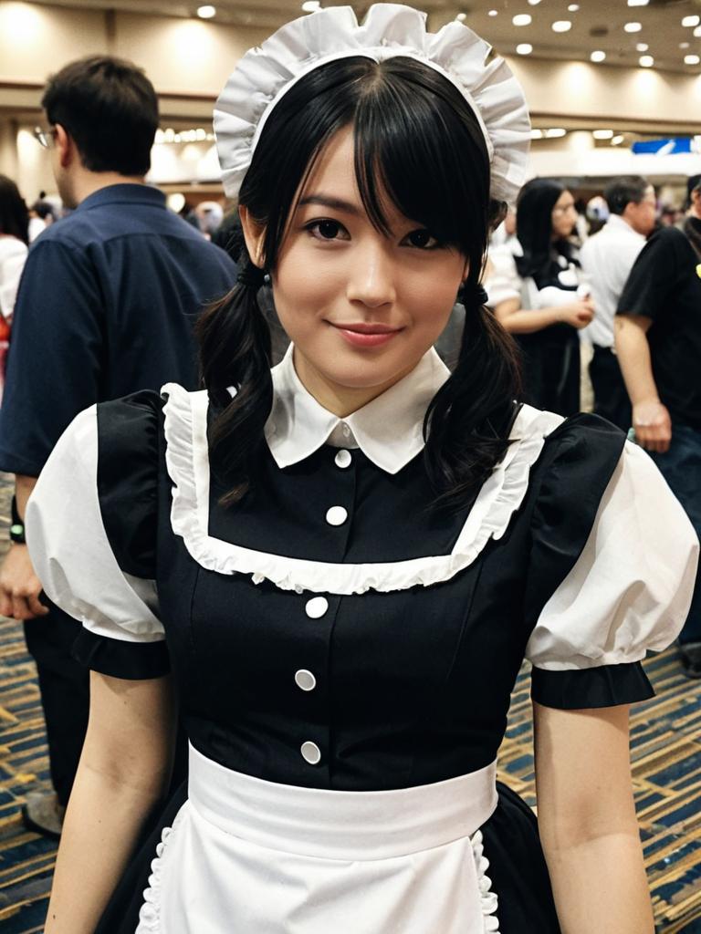 Woman in Lockable Maid Costume, candid cosplay portrait at convention