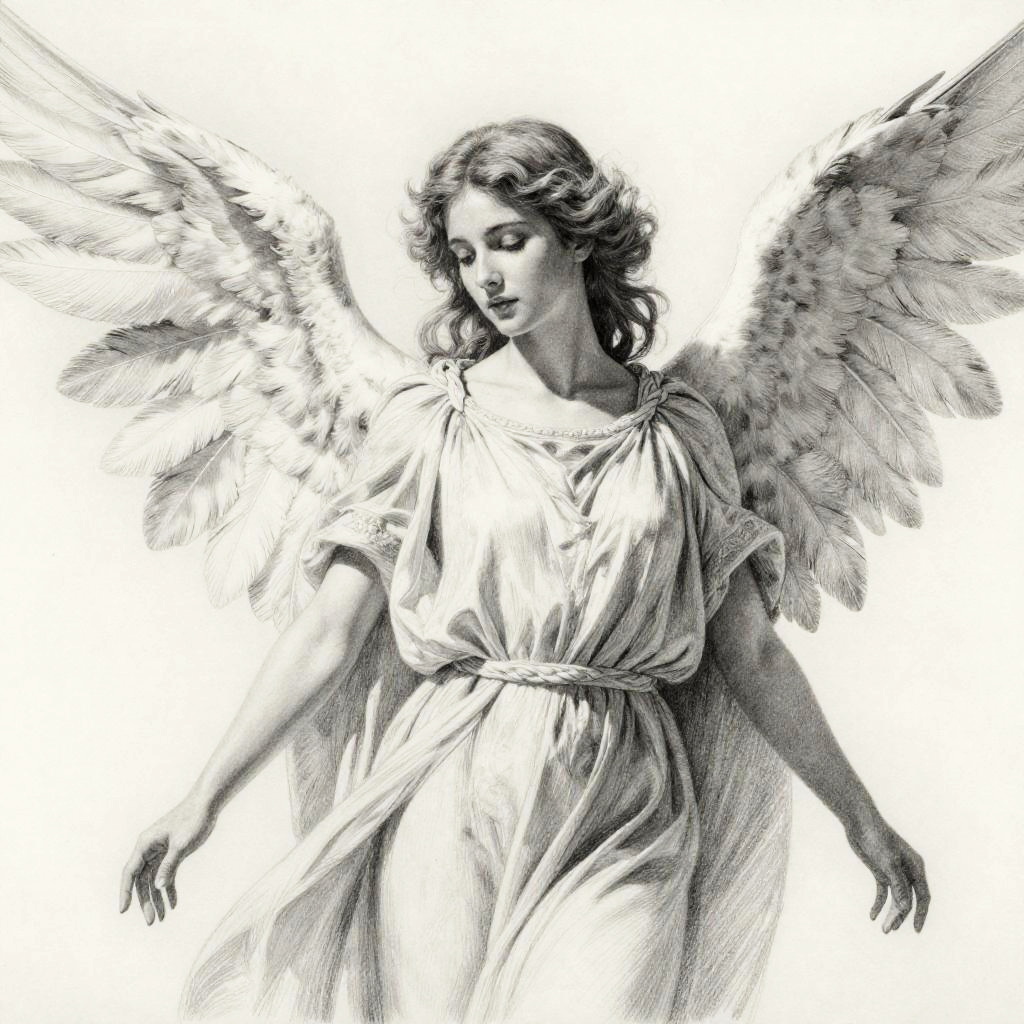 Realistic Charcoal Angel Sketch