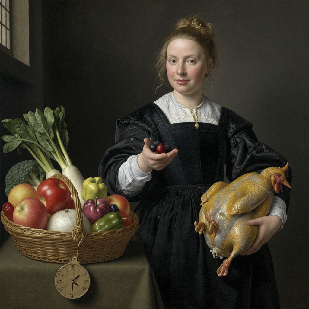 Market Woman with Produce and Poultry