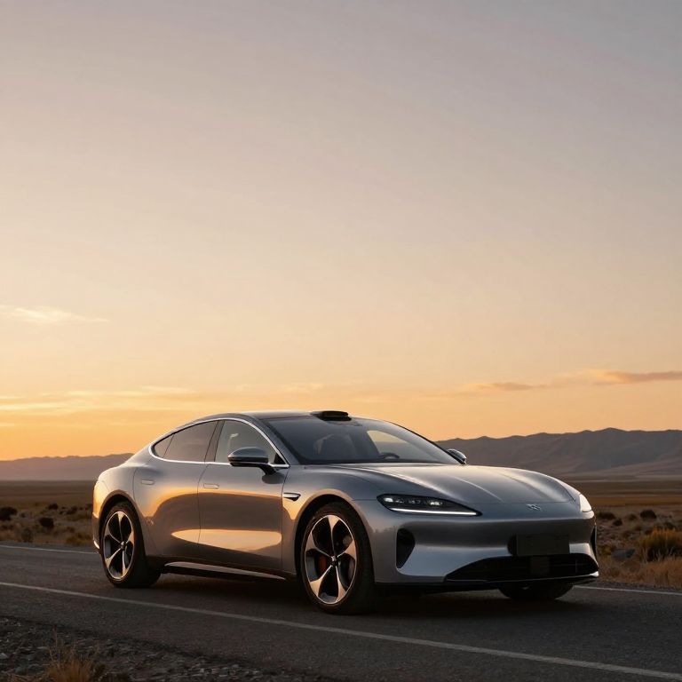 Embracing the infinite horizon, this sleek vision of luxury whispers freedom and serenity, its polished form mirroring the tranquil sunset and the boundless promise of open roads ahead.