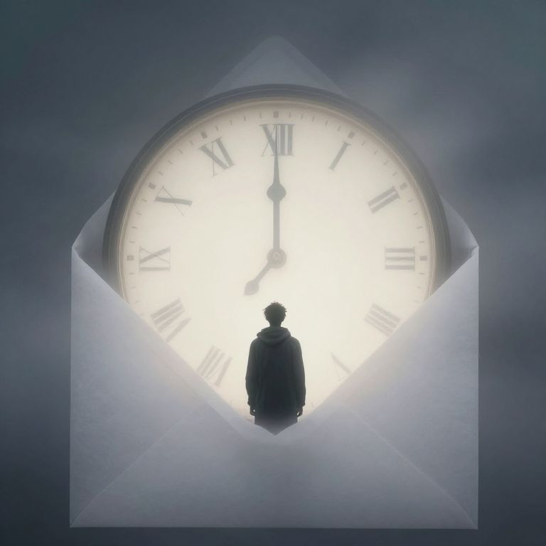 Enveloped by the ethereal glow of a fog-bound clock, a solitary figure stands at the threshold of time, where the whispers of forgotten memories intertwine with the haunting promise of infinite loops, evoking a profound sense of existential contemplation and the bittersweet dance of remembrance.