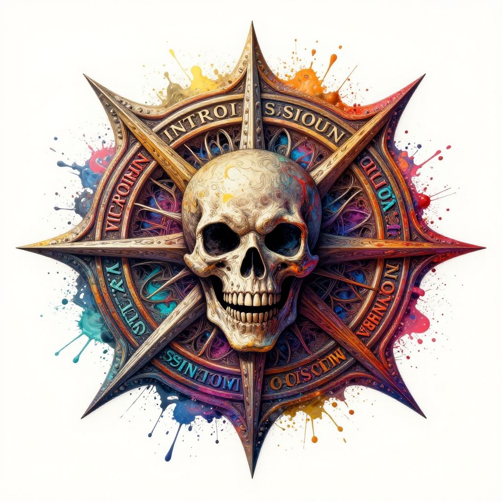 Paint splatter, poster_\(medium\), Interdimensional death punch, emblem, (simple_background:1.3), symmetry, (no_humans:1.3), (masterpiece:1.3), (best_quality:1.3), (ultra_detailed:1.3), 8k, extremely_clear, realism, (ultrarealistic:1.3), insane details, intricate details, hyperdetailed, ultra detailed, extreme detailed, highest detailed, high_detail, colorful, beautiful, hdr, photorealistic, highres, ultra_high_res, photography, aesthetic, extremely_delicate