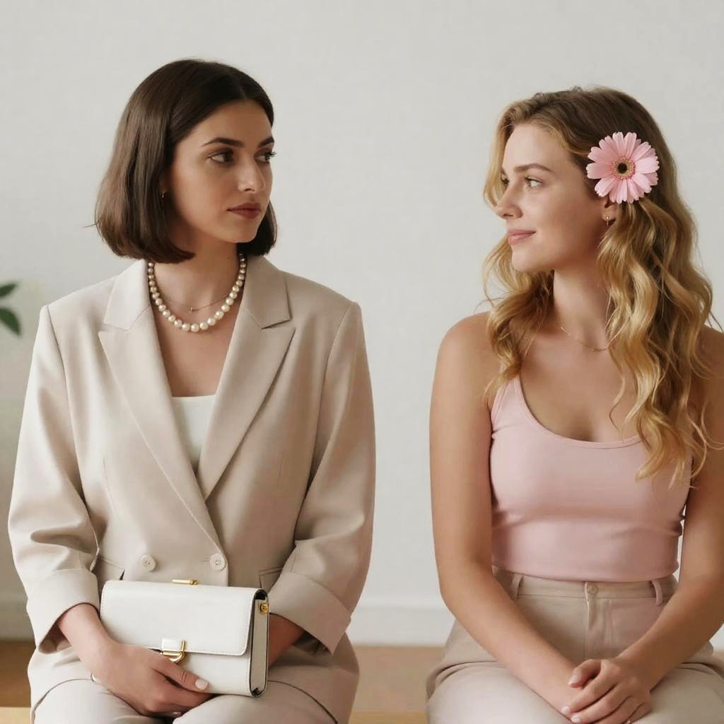 Two Women Sitting Back-to-Back on Heart-Shaped Chair