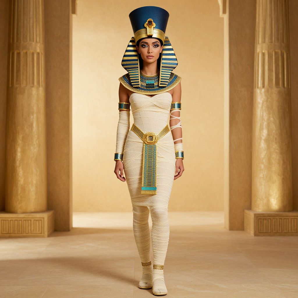 Mummy Returns Nefertiti Costume, a woman in a pharaoh costume standing in a room
