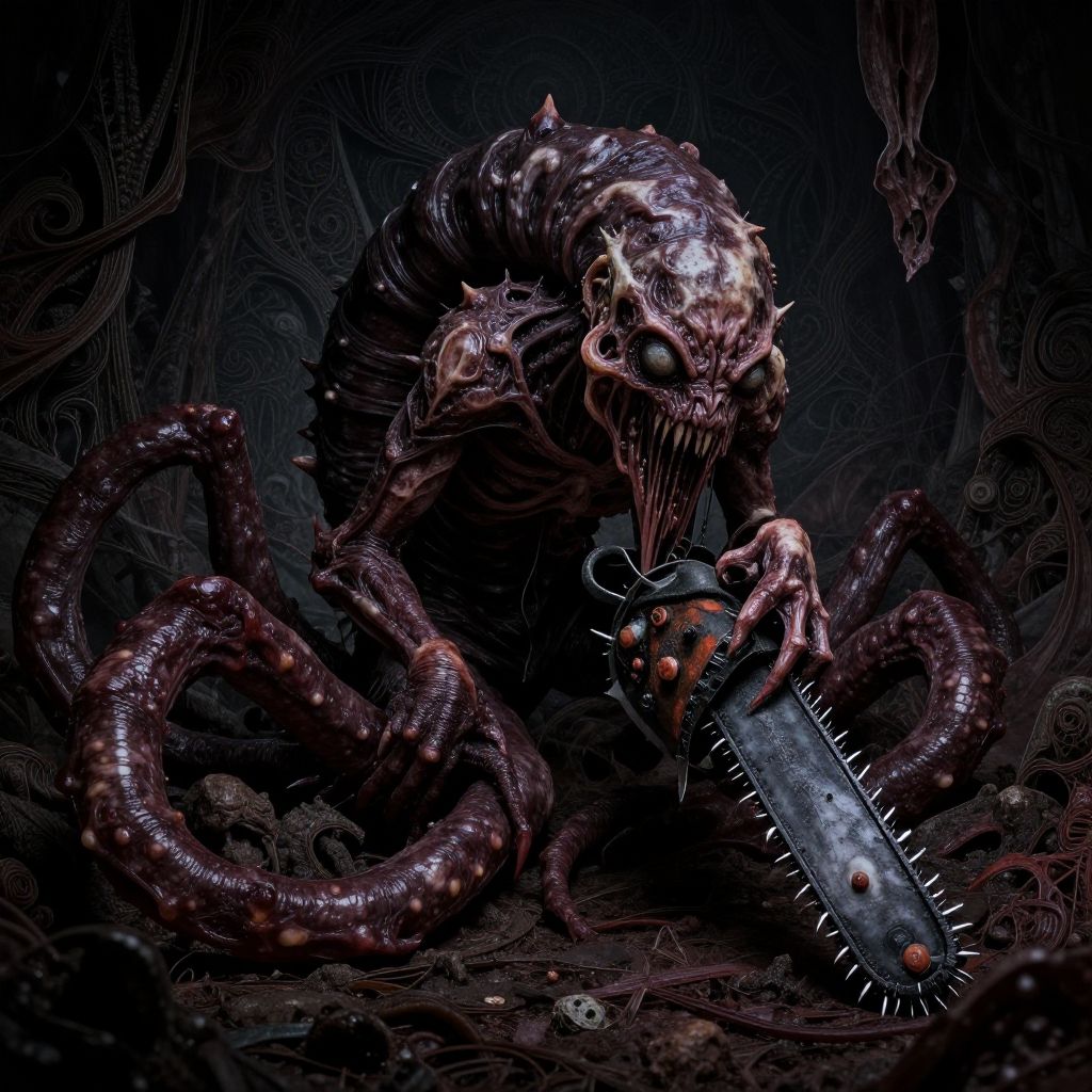 Worm like monster, scary, terrifying, grotesque, unsettling, eerie, intricate background, monstercore, horrorpunk, junji ito, danny ingrassia, peter mohrbacher, masterpiece, high quality, hyperdetailed, photorealistic, dynamic lighting, chainsaw man anime monster, inspired by pinterest art and instagram