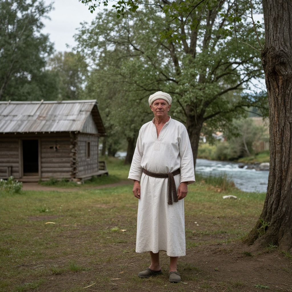 Man in Traditional Attire by River