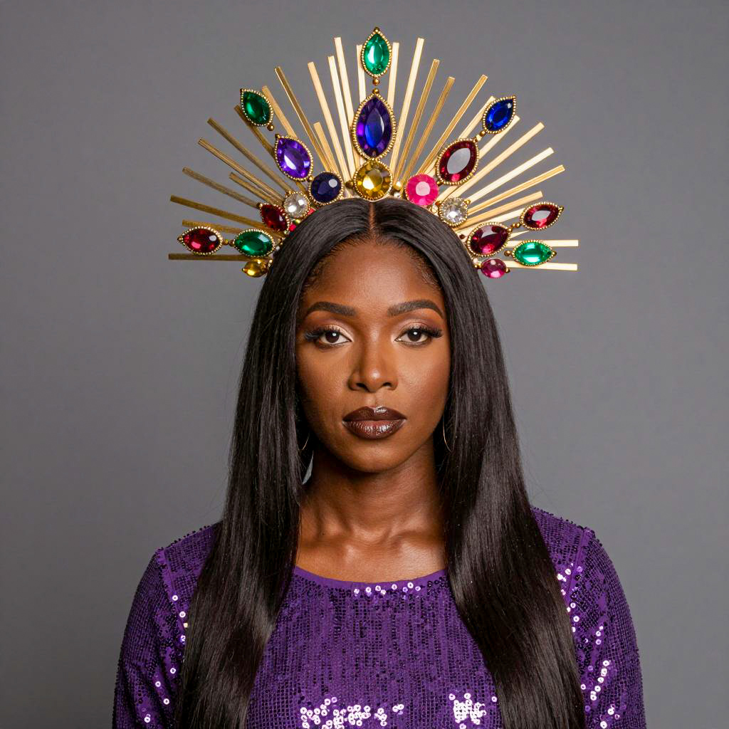 Black Woman in Colorful Patterned Jacket and Silver Jewelry