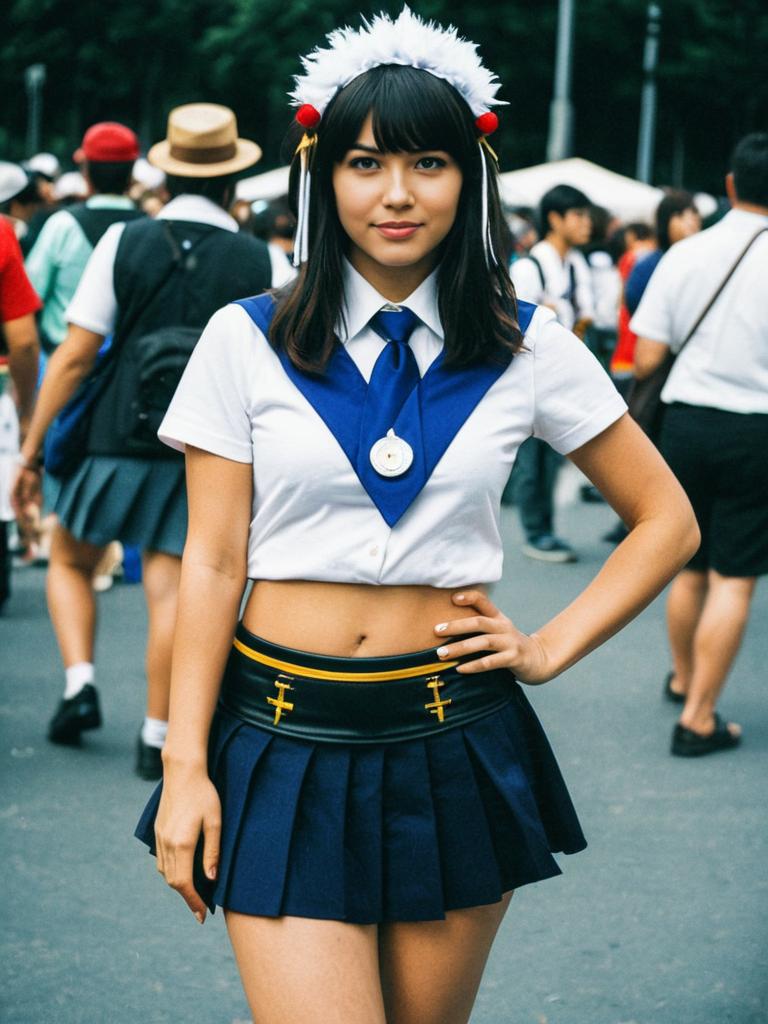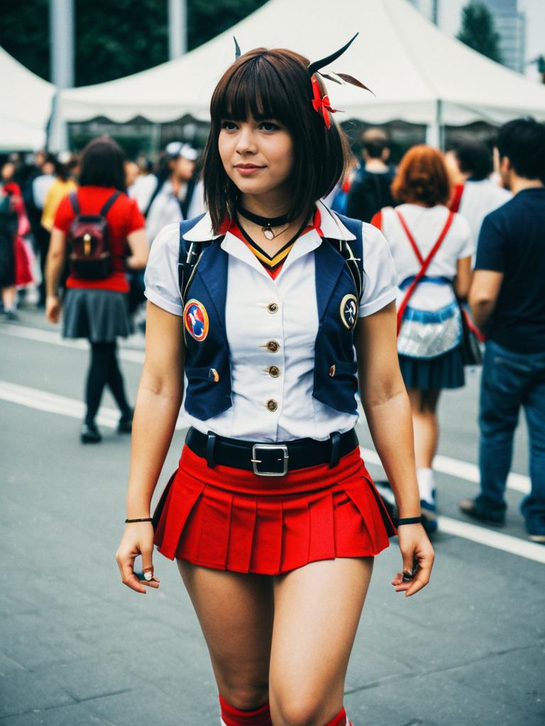Woman in Mini Skirts costume, cosplay festival portrait, realistic style