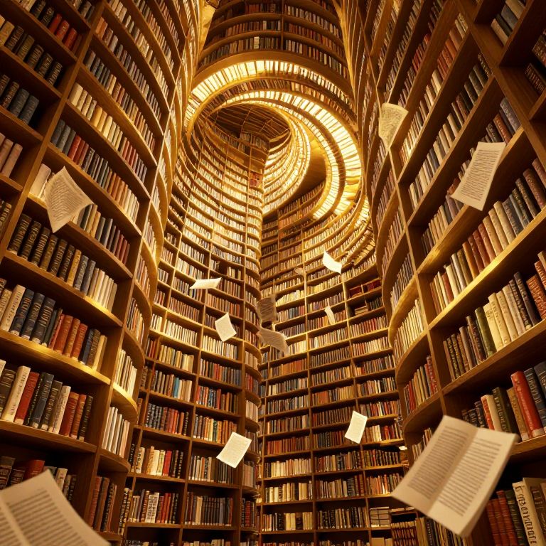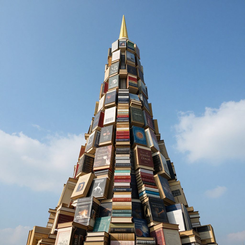 An endless tower of knowledge ascends toward the heavens, its ever-growing spires a testament to the boundless power of imagination and the collective human spirit, where each book whispers stories of hope, discovery, and the eternal quest for understanding.