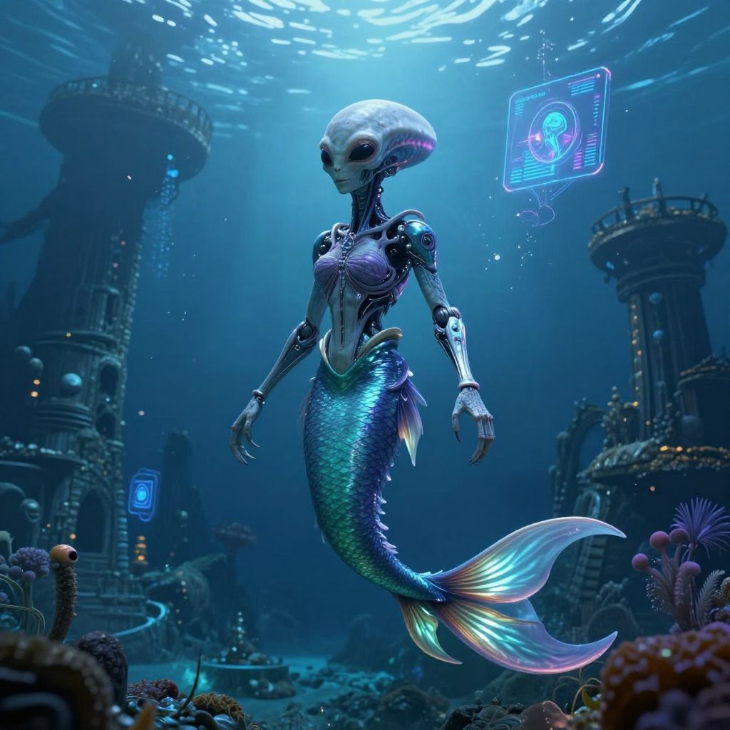 Alien Mermaid in Futuristic Ocean