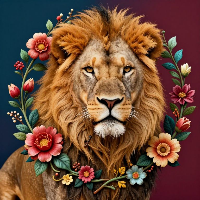 Majestic Lion with Floral Decor