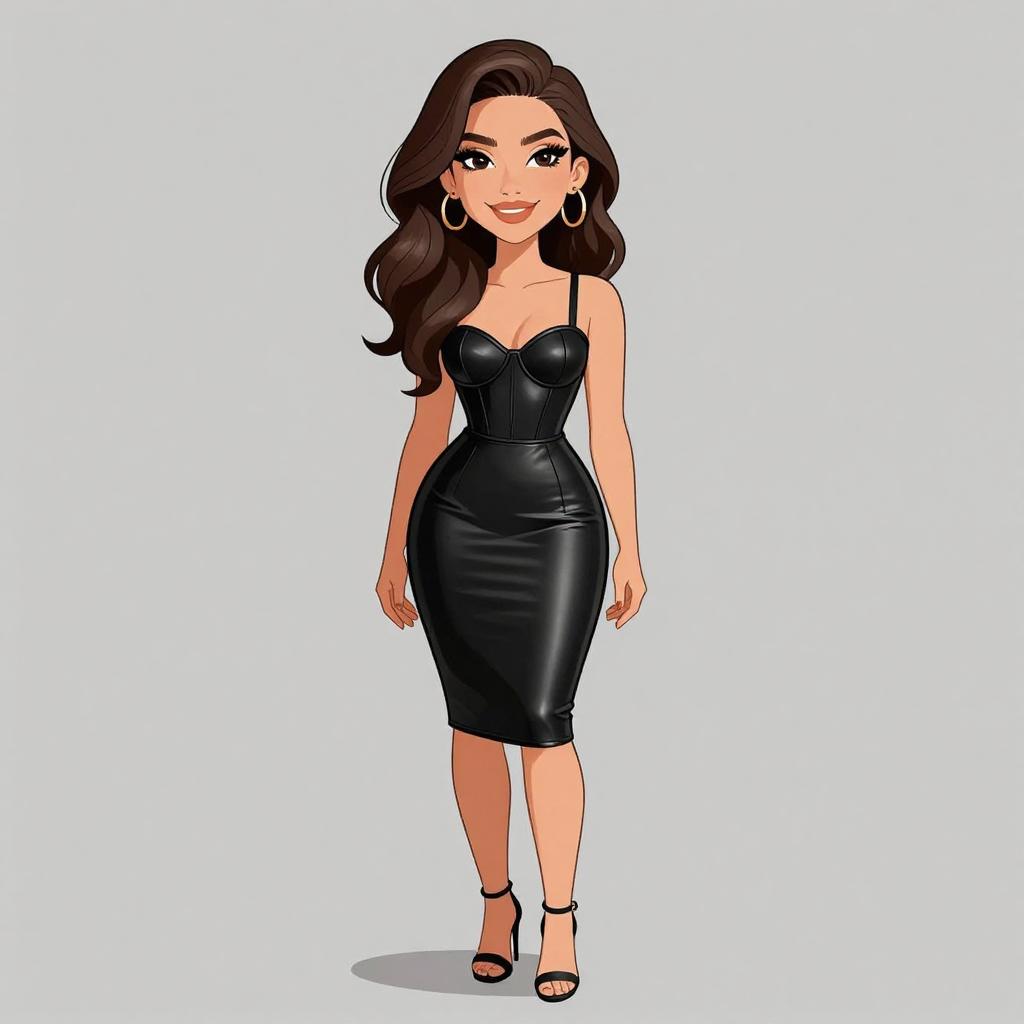 Woman with pretty face and pretty hair. smiling Woman, Glam, black sequined mini dress with wavy patterns, scoop neckline, long sleeves, thigh-length, paired with a simple black clutch. --sref 1467