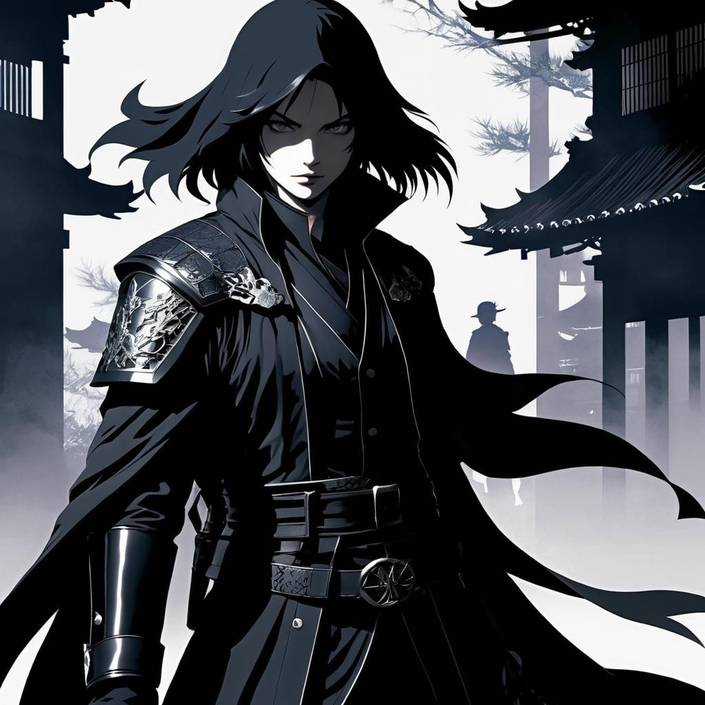 Shadowy Manga Assassin in Traditional Japanese Setting