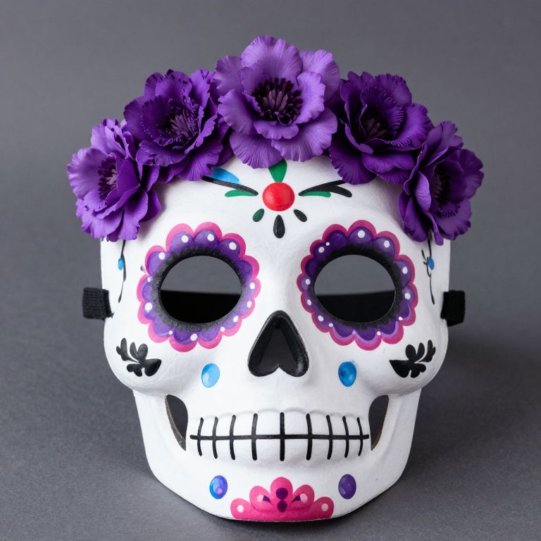 Day of The Dead Masks Sugar Skull Mask with Purple Flowers and Elastic Band