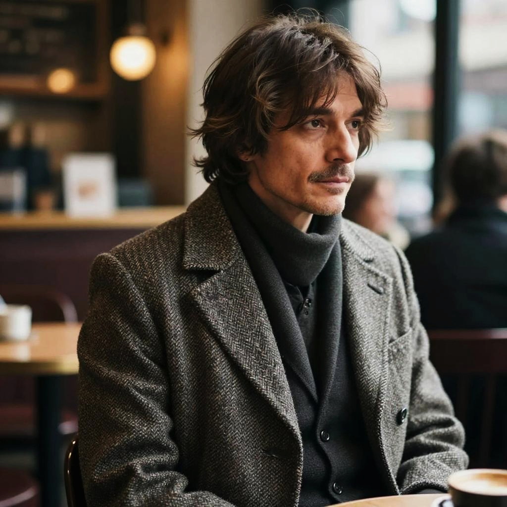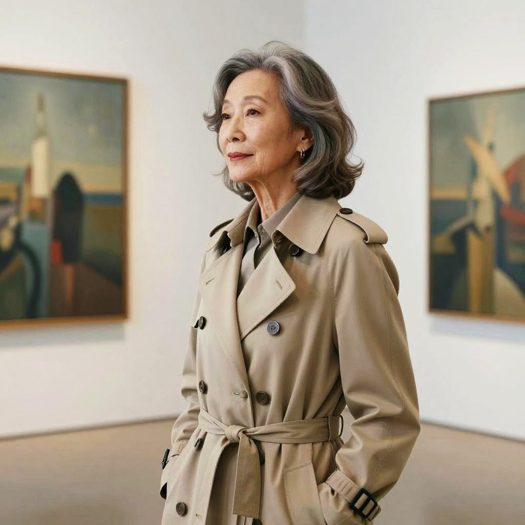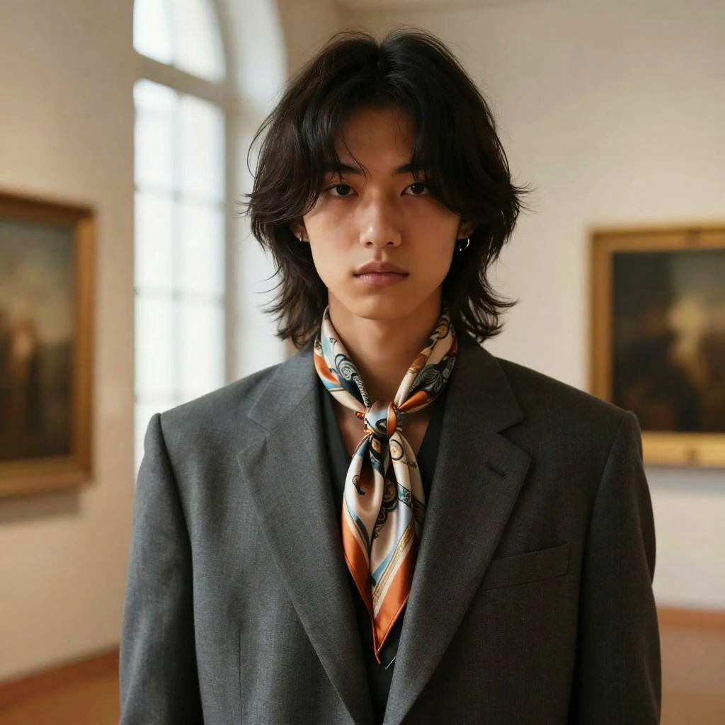 Layered Bangs hairstyle on young girl, wearing floral blouse, in city rooftop, captured in fashion editorial style with golden hour glow.